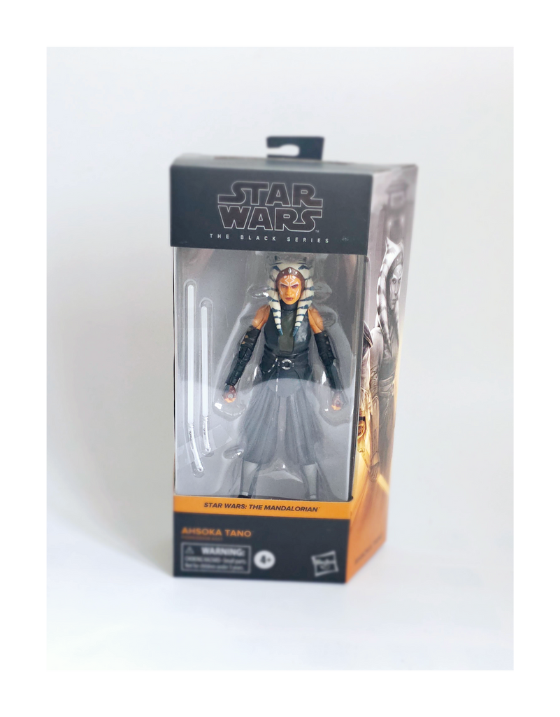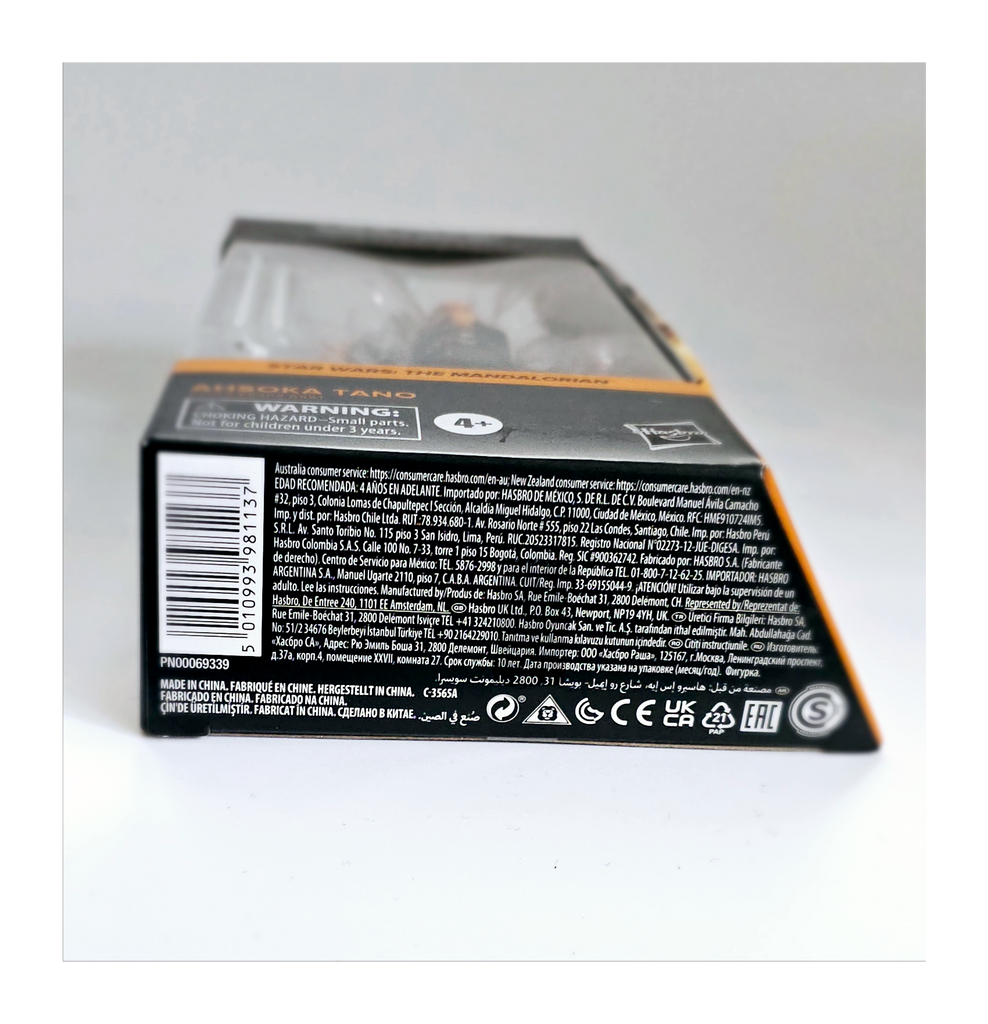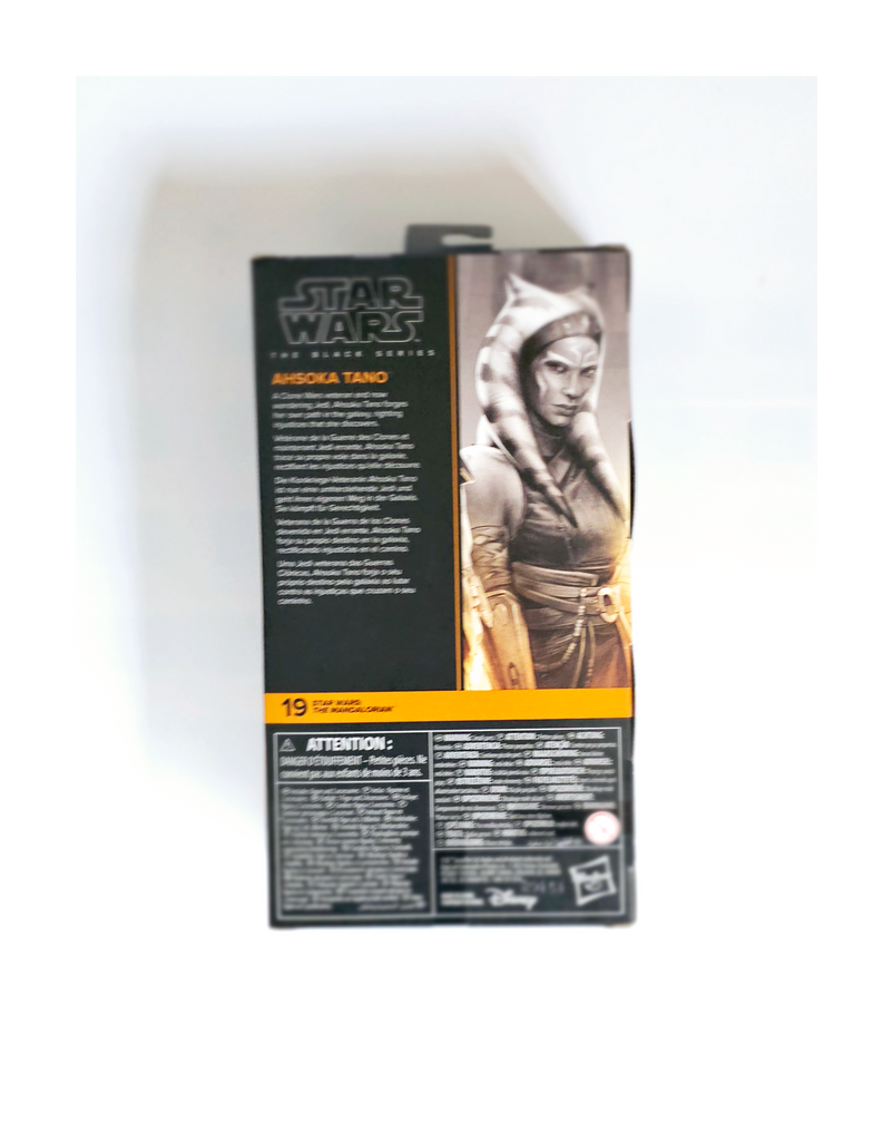 Hasbro Star Wars The Black Series F4349 - 19 Star Wars: The Mandalorian - Ahsoka Tano Action Figure, Disney in its original box. It weighs 163 g. Its measurements are 12.5 cm width, 22.8 height, and 5 cm depth. Brand new and In excellent condition. Collectable. Collectors' item.