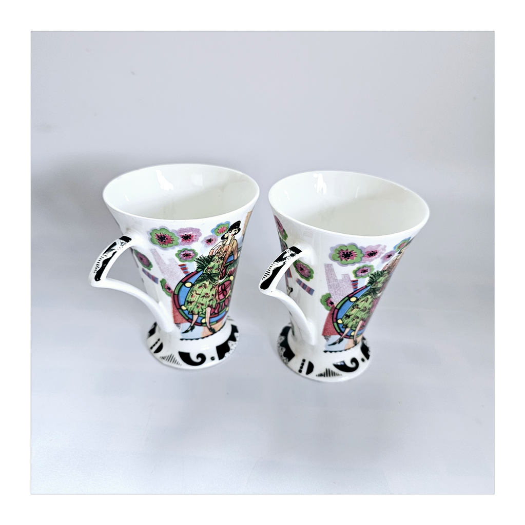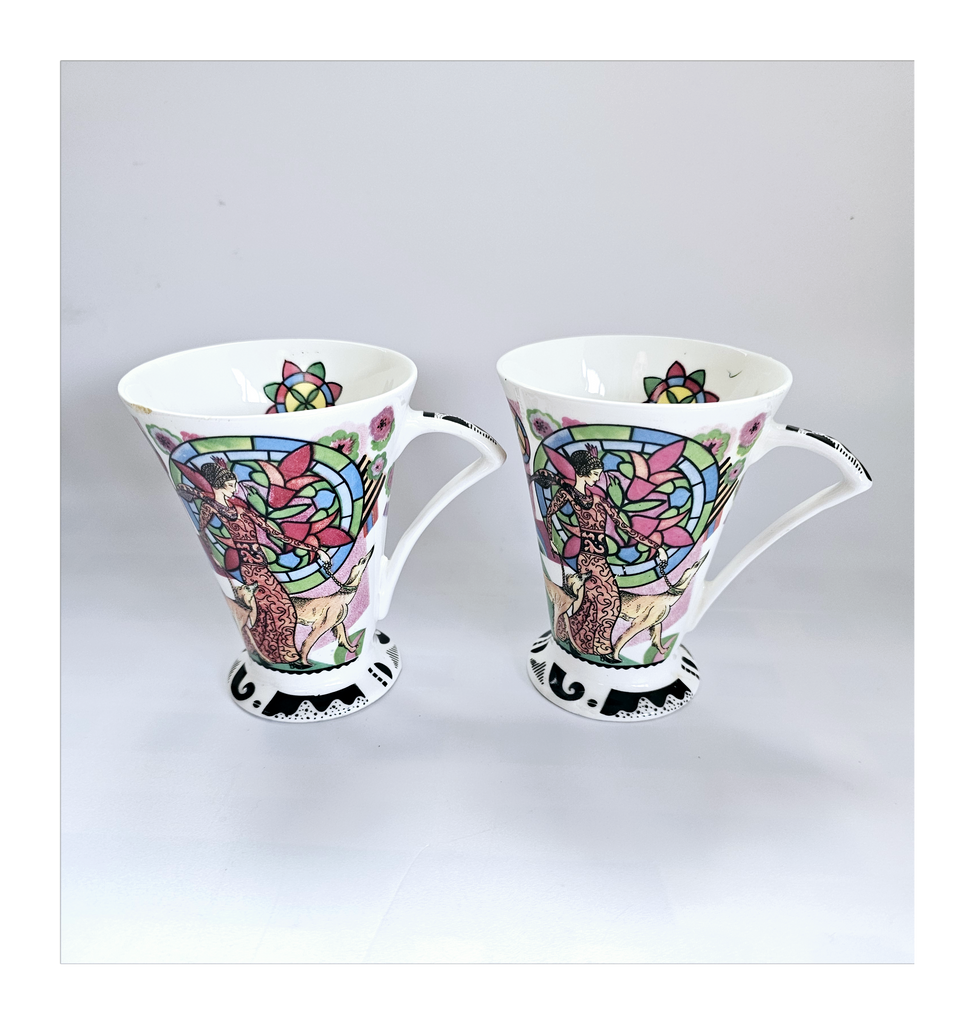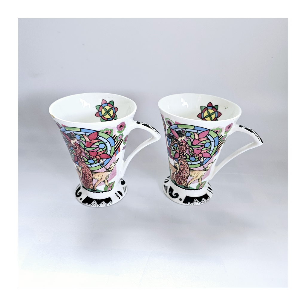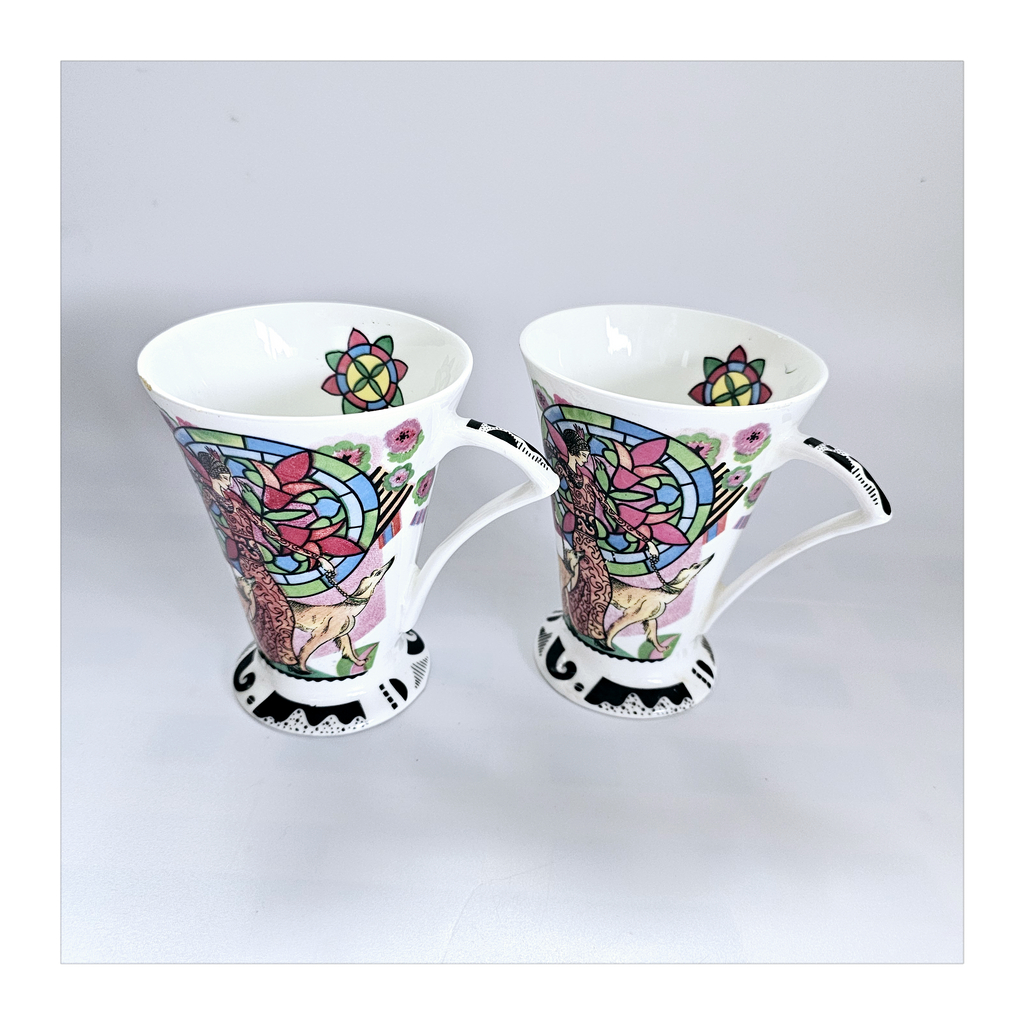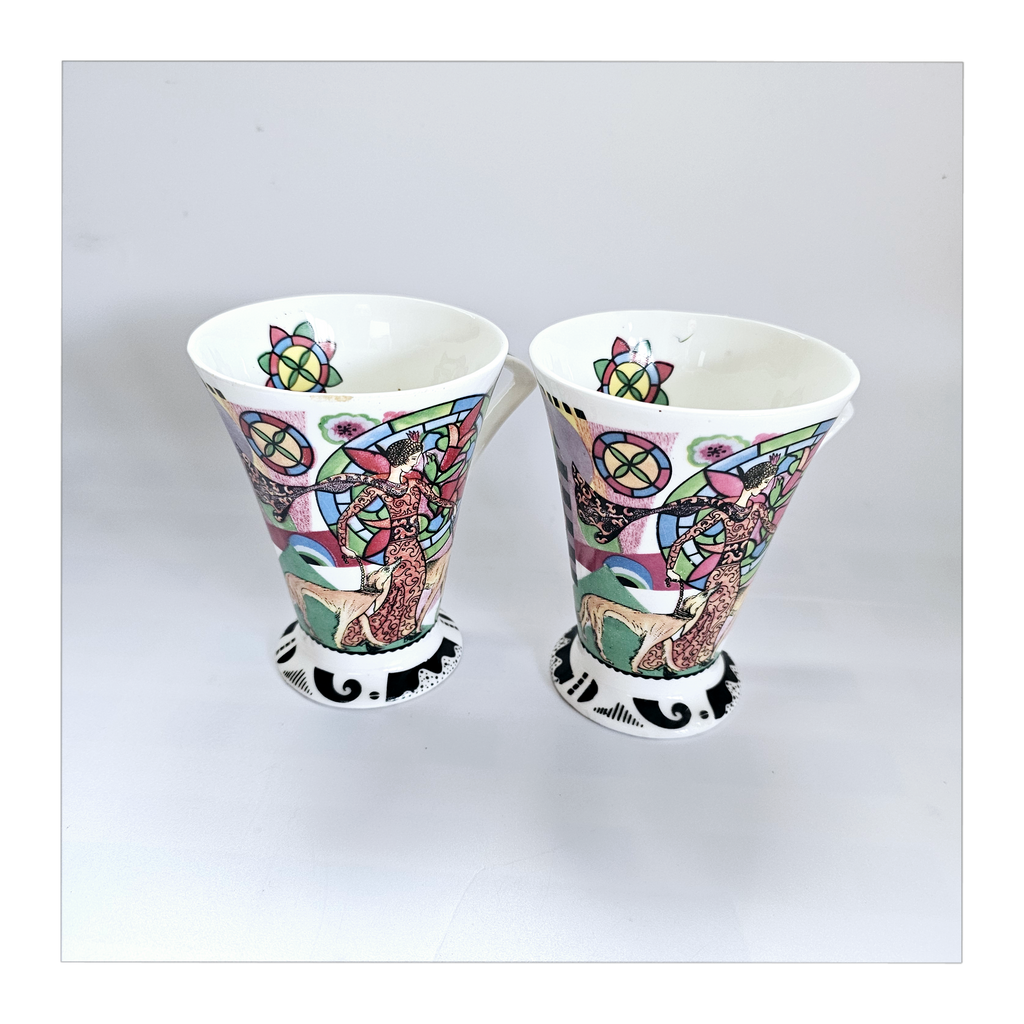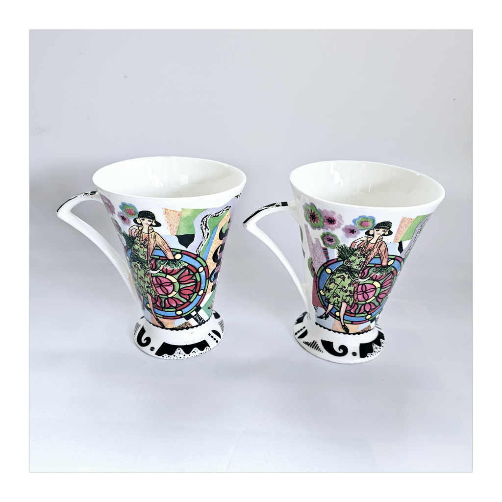 A Pair of Art Deco Style Ribal Fine Bone China Mugs