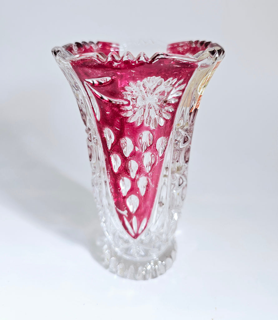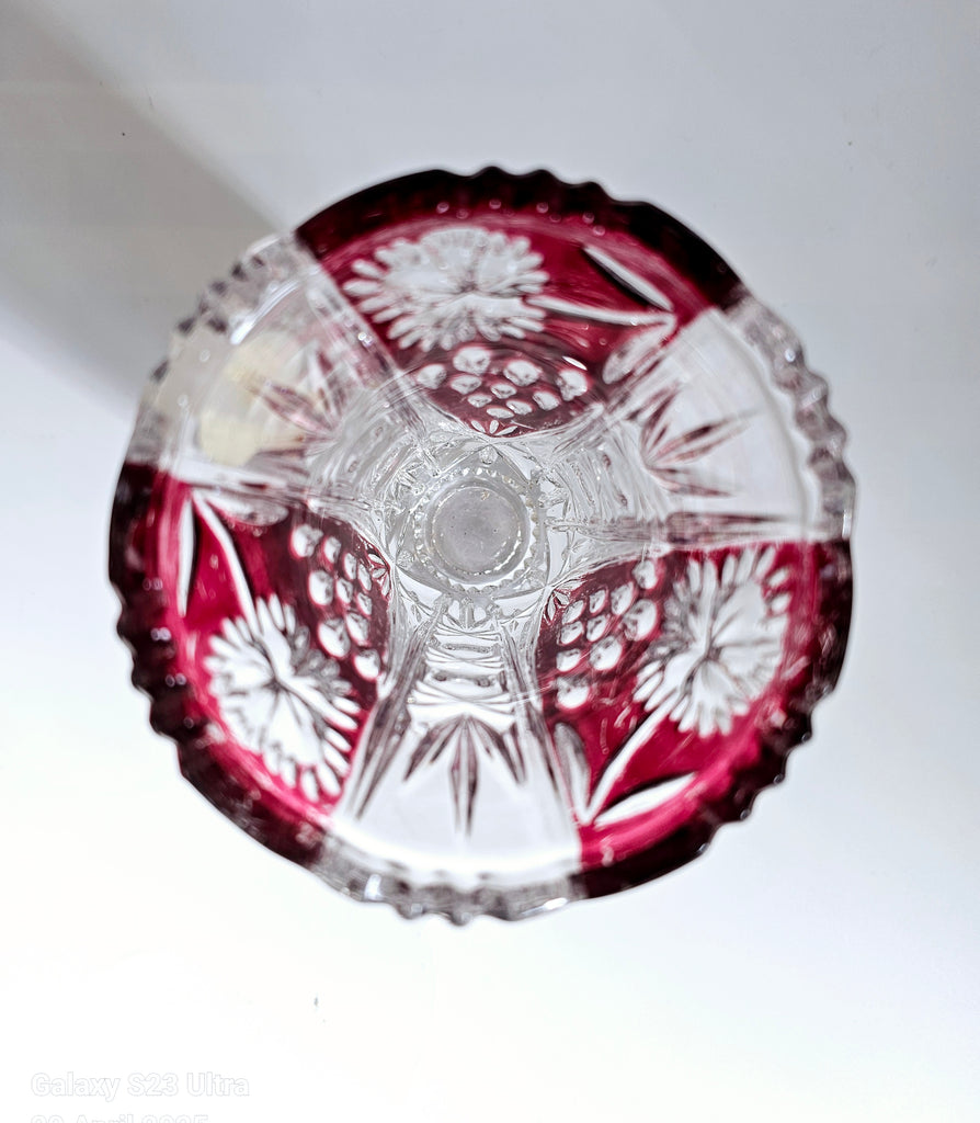 A sought-after 1970's vintage Anna Hutte lead crystal (bleikristall) ruby red vase 24% PbO -  made in Germany. In perfect condition, no chips, no cracks and no restoration. It weighs 584g, and it measures 9.5 cm diameter at the top, 5.2 cm diameter at the bottom, and 15 cm height. A great addition to your vintage vase / lead crystal collection. Collectible. Collector's item.