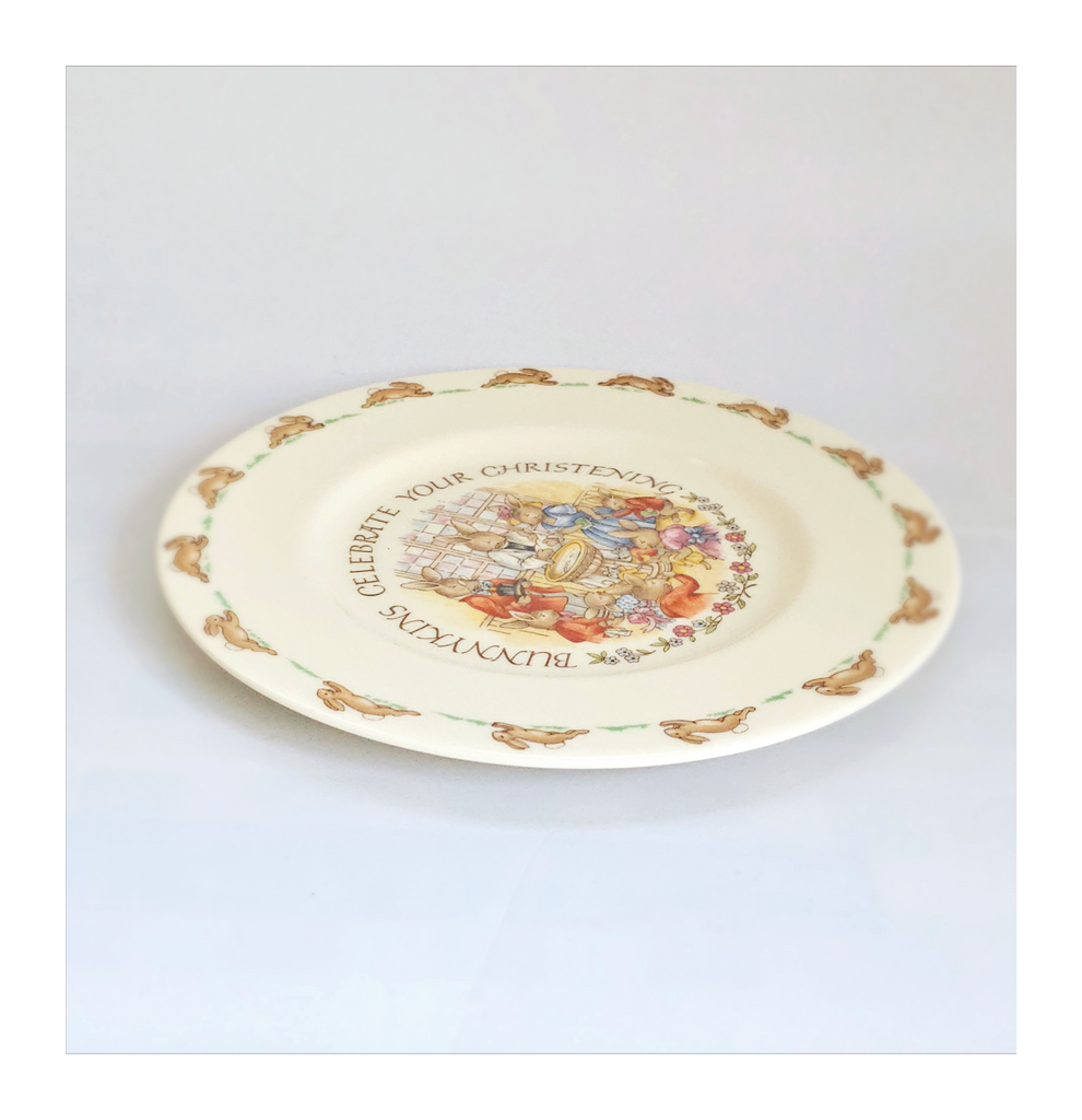 A vintage 1960's Royal Doulton Bunnykins Fine Bone China Baby Plate "Bunnies Attending Christening Ceremony" Christening Present