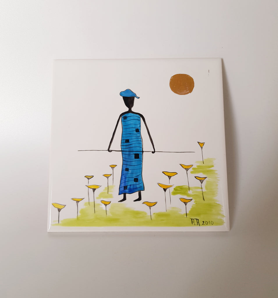 A beautiful African tribal design, decorative ceramic Art Tile, signed and dated as A.A. 2010. A great addition to your collection of Art Tiles. It weighs 0.2 kg. Its measurements are Height 15 cm, Width 15 cm, Depth 0.5 cm. It is in a very good condition. Collectable. Collectors' item.