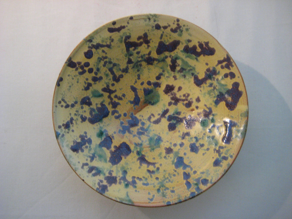 A hand painted contemporary design ceramic Bowl in yellow with blue and green patterns all around it. It is signed by the artist as CF 98. It weighs 0.64 kg. Its size is 5 cm H, 19.5 cm Diameter. It is in a very good condition. Free shipping to UK & Northern Ireland, only £5 to Europe and £10 to the rest of the world.