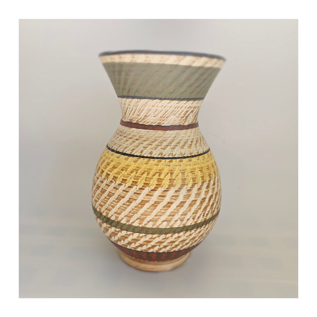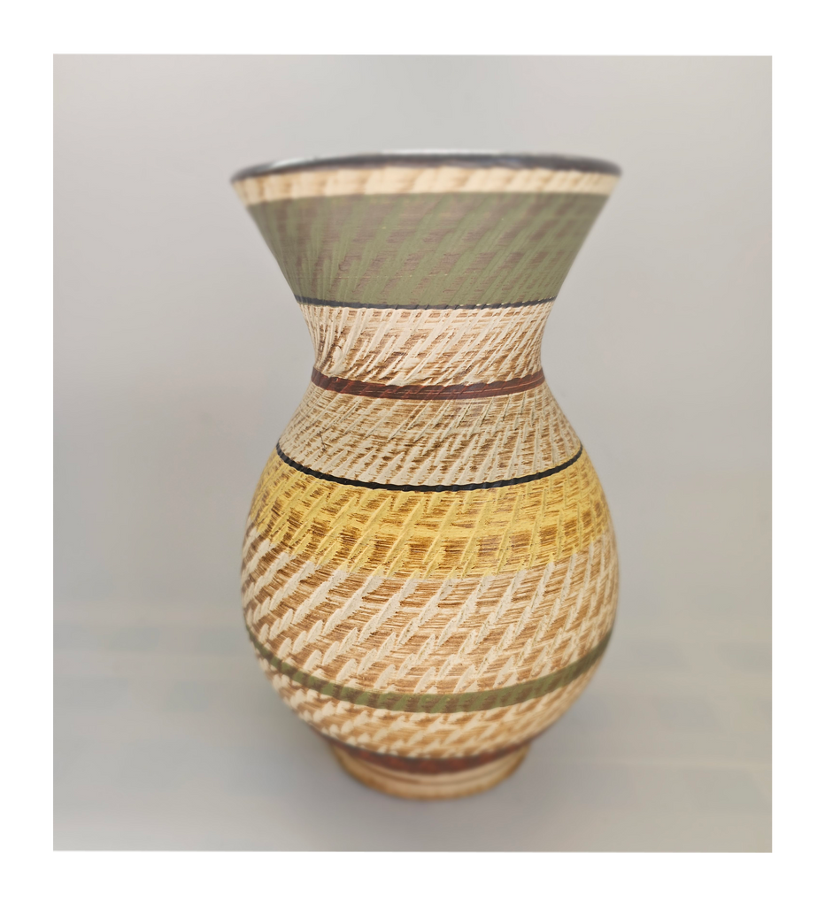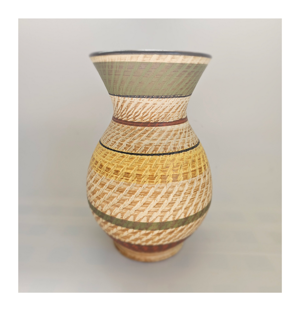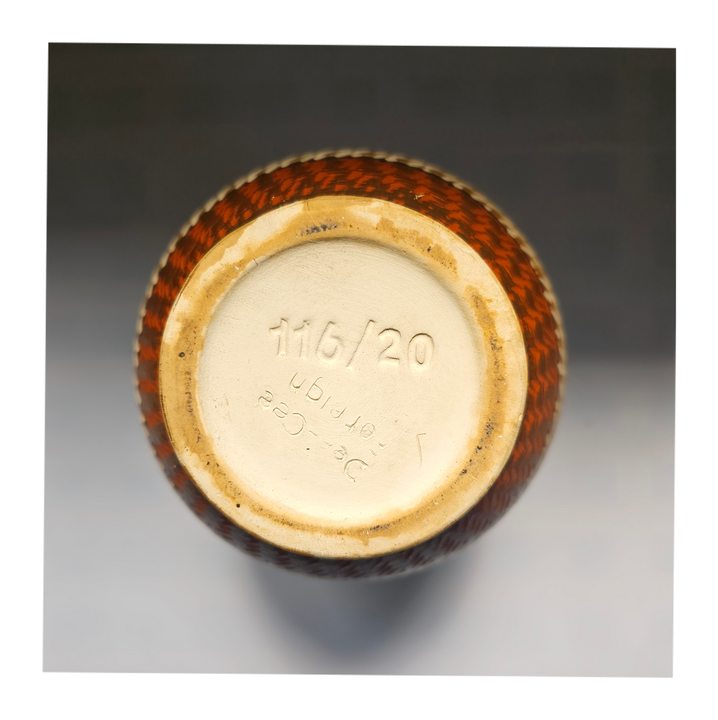 A beautiful Vintage / Retro 1950's / 1960's Dee Cee German Studio Art Pottery Ceramic Earthenware Vase from the Terra Series 116/20 manufactured by Dumler & Breiden German Pottery Manufacturer. Very stylish and looks great in a contemporary design house. In excellent condition, no cracks, no restoration. It weighs 720 g. It's measurements are 13 cm diameter at its widest and 19 cm height. A great addition to your studio art pottery collection. Collectable. Collector's item.