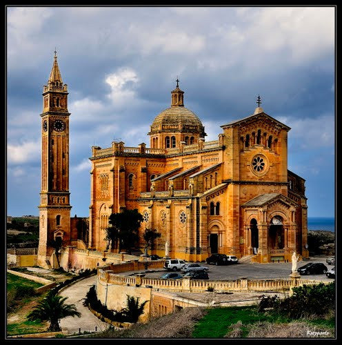 A beautifully hand carved decorative plate with a 3D model of Ta Pinu Church in Island of Gozo - Malta. It weighs 0.54 kg and its diameter is 24 cm.