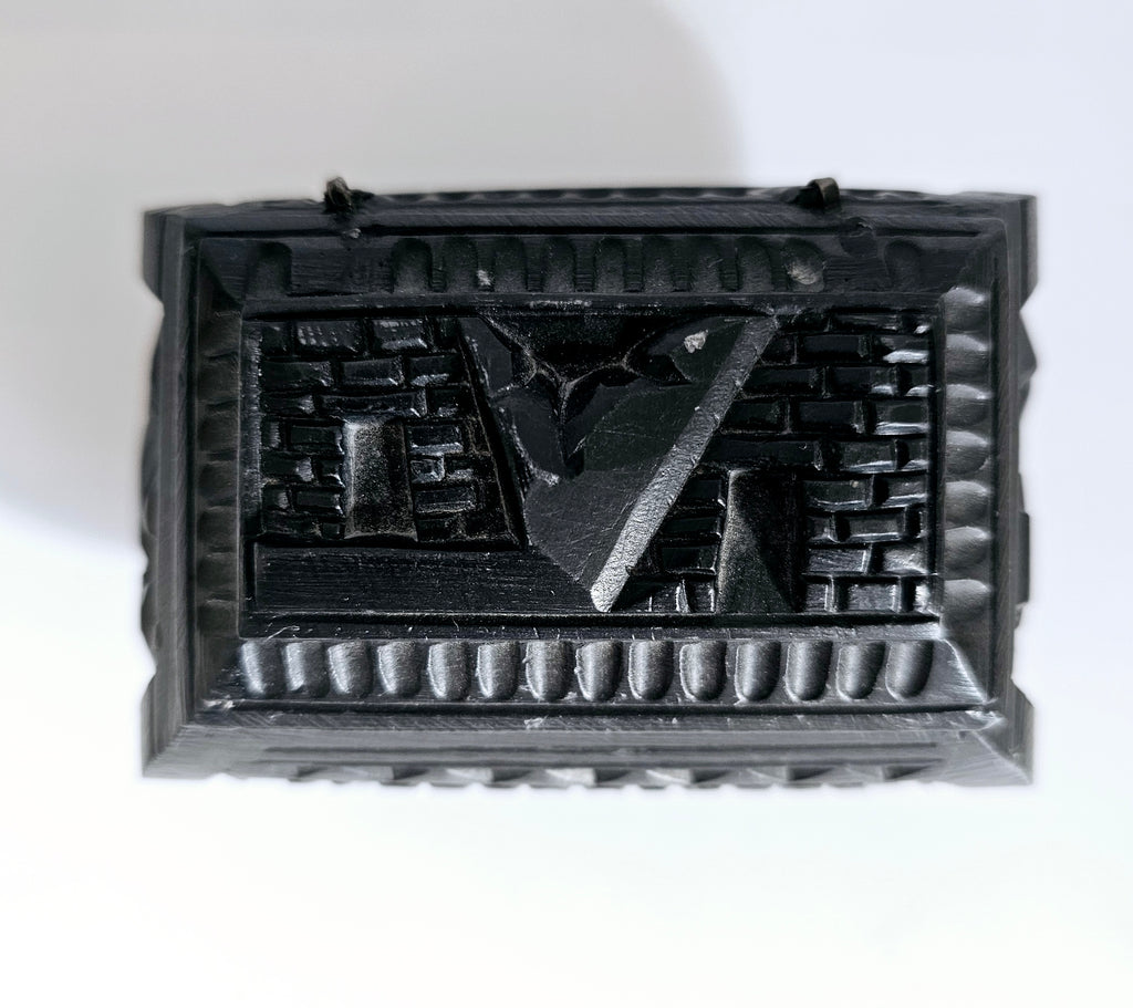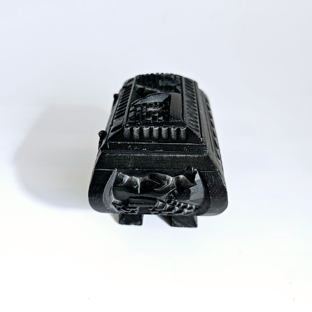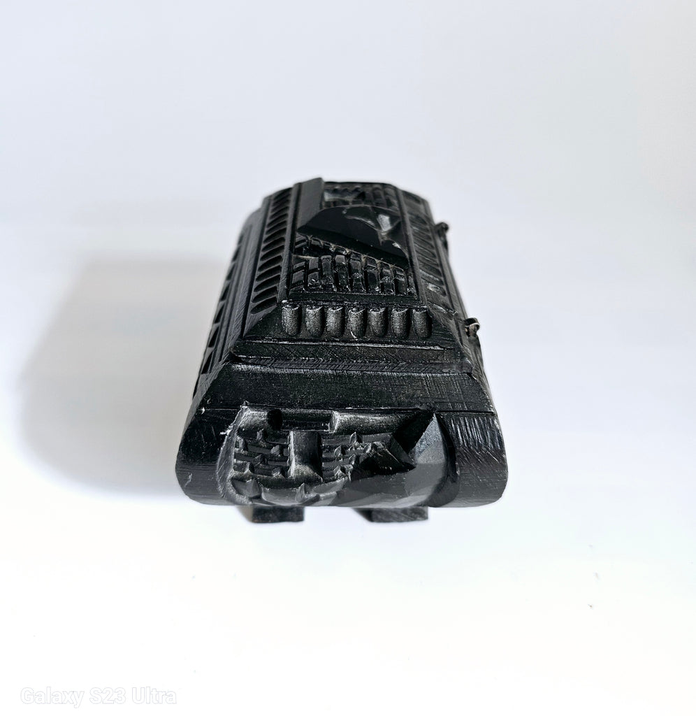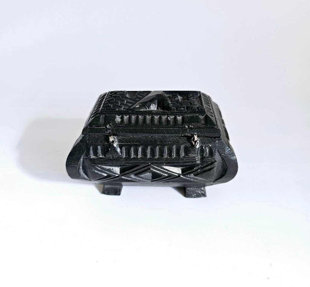 Rare Vintage 1950's Alfredo Vera Carved Black Clay (Barro Negro) Miniature Trinket Box - Mexican Folk Art