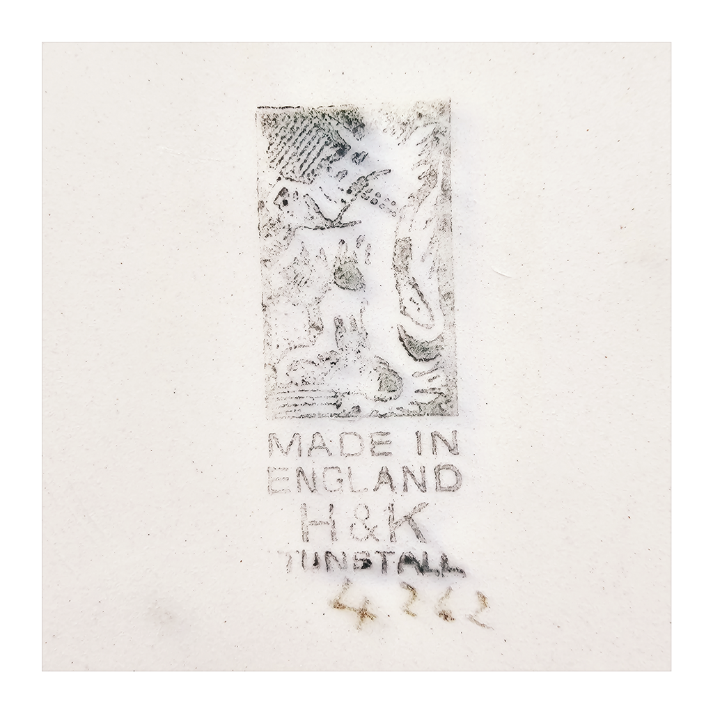 A rare vintage 1930's Art Deco H&K hand painted Tunstall pattern shallow bowl. It is back stamped as "Made in England H&K Tunstall 4242".It weighs 171 g. It's measurements are 14 cm length, 14 cm width, 3.5 cm height. It is in an excellent condition, no chips, no cracks and no restoration. A great addition to your H&K collection. Collectable. Collector's item.
