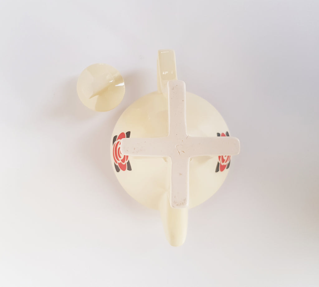 A beautiful vintage art deco ceramic teapot. A great addition to your teapot or art deco collection. It weighs 0.3 kg. Its measjurements are Height 12 cm, Diameter 12 cm. It is in a very good condition with the exception of a small chip on the spout of the teapot. Collectable. Collectors' item.