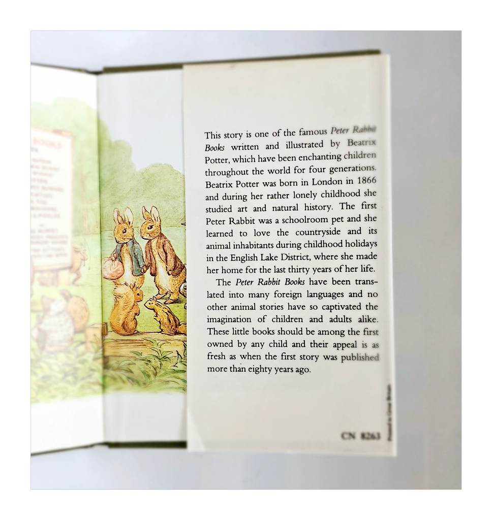 A vintage 1988 BEATRIX POTTER 'The Story Of A Fierce Bad Rabbit', Frederick Warne & Co. It weighs 74 g. Its measurements are 11 cm width, 14.4 cm length, and 0.5 cm depth. In excellent condition. A great addition to your Beatrix Potter collection. Collectable. Collector's item.