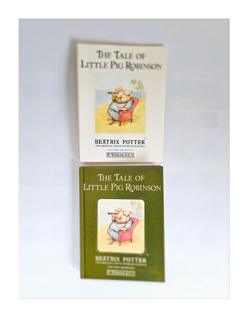 A vintage 1988 BEATRIX POTTER 'The Tale Of Little Pig Robinson', Frederick Warne & Co. It weighs 158 g. Its measurements are 11 cm width, 14.4 cm length, and 0.7 cm depth. In excellent condition. A great addition to your Beatrix Potter collection. Collectable. Collector's item.