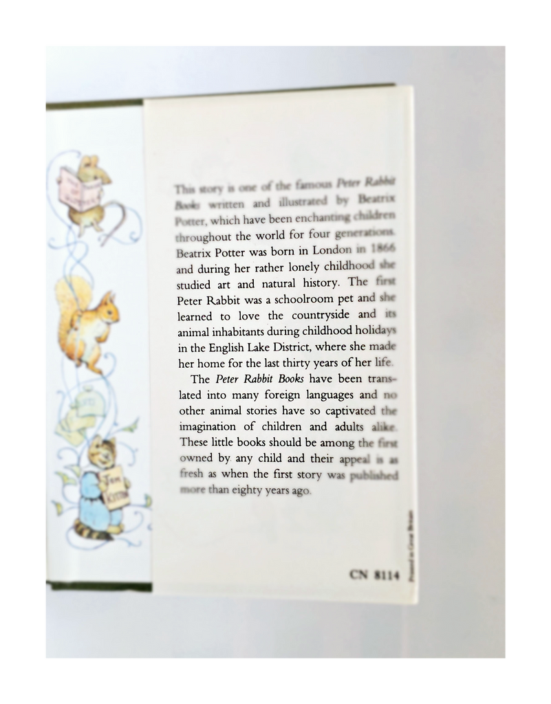 A vintage 1988 BEATRIX POTTER  'The Tale Of Pigling Bland', Frederick Warne & Co. It weighs 120 g. Its measurements are 11 cm width, 14.4 cm length, and 0.5 cm depth. In excellent condition. A great addition to your Beatrix Potter collection. Collectable. Collector's item.