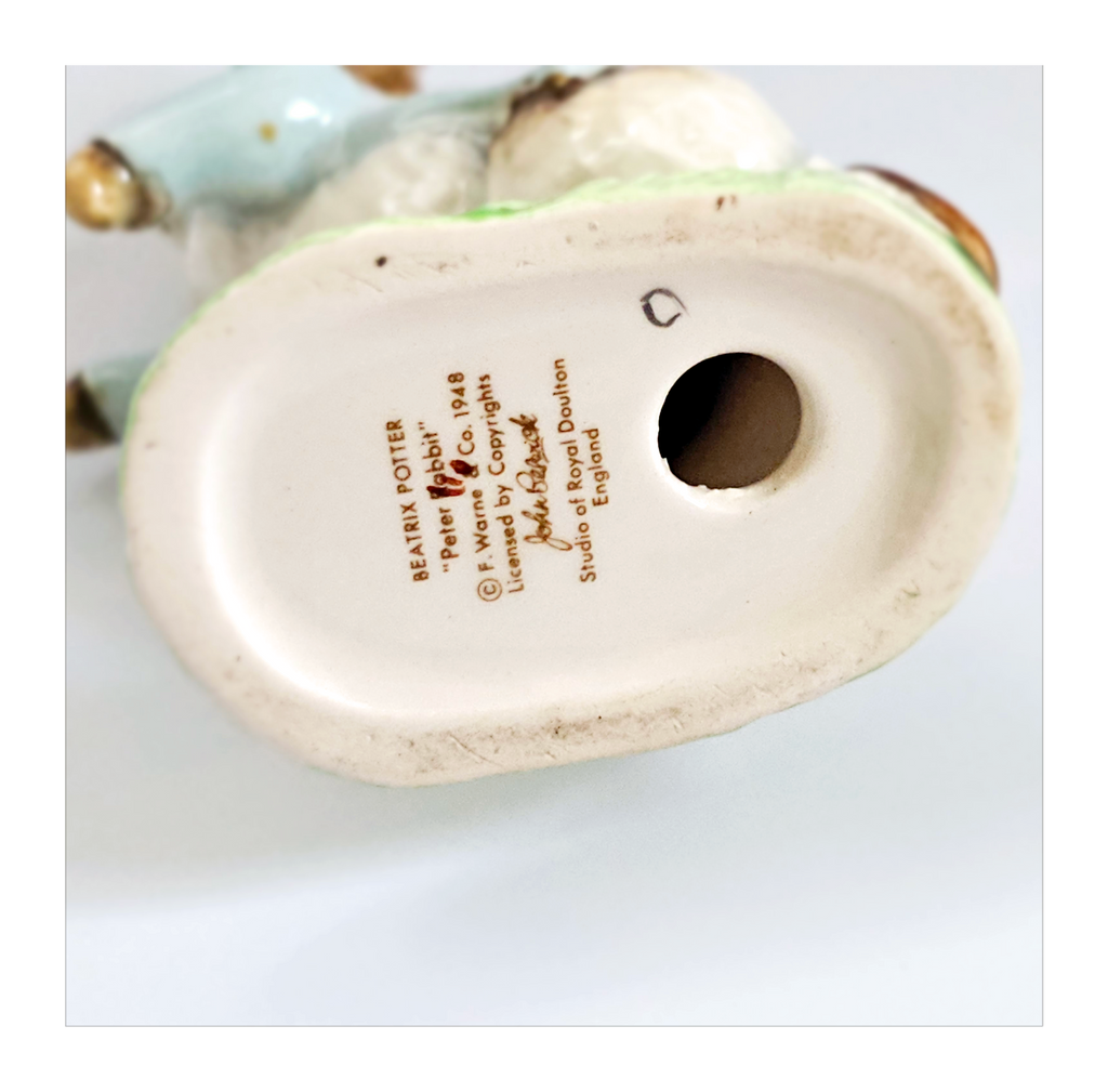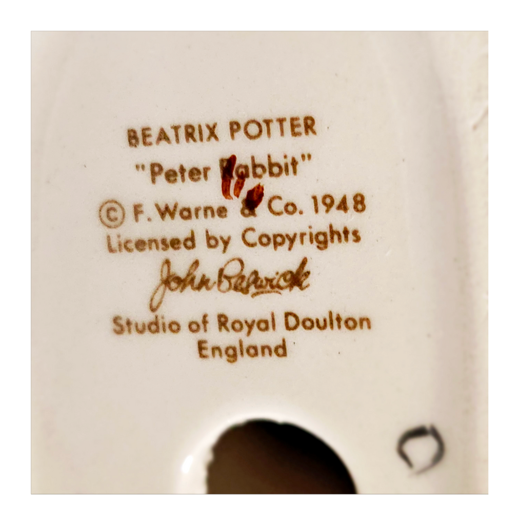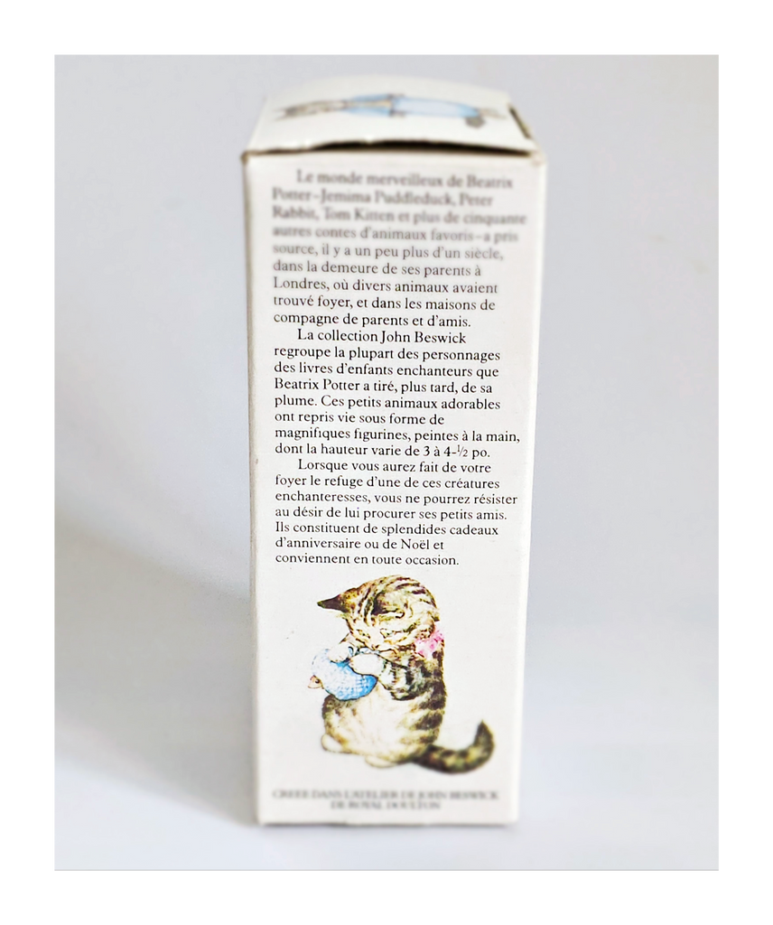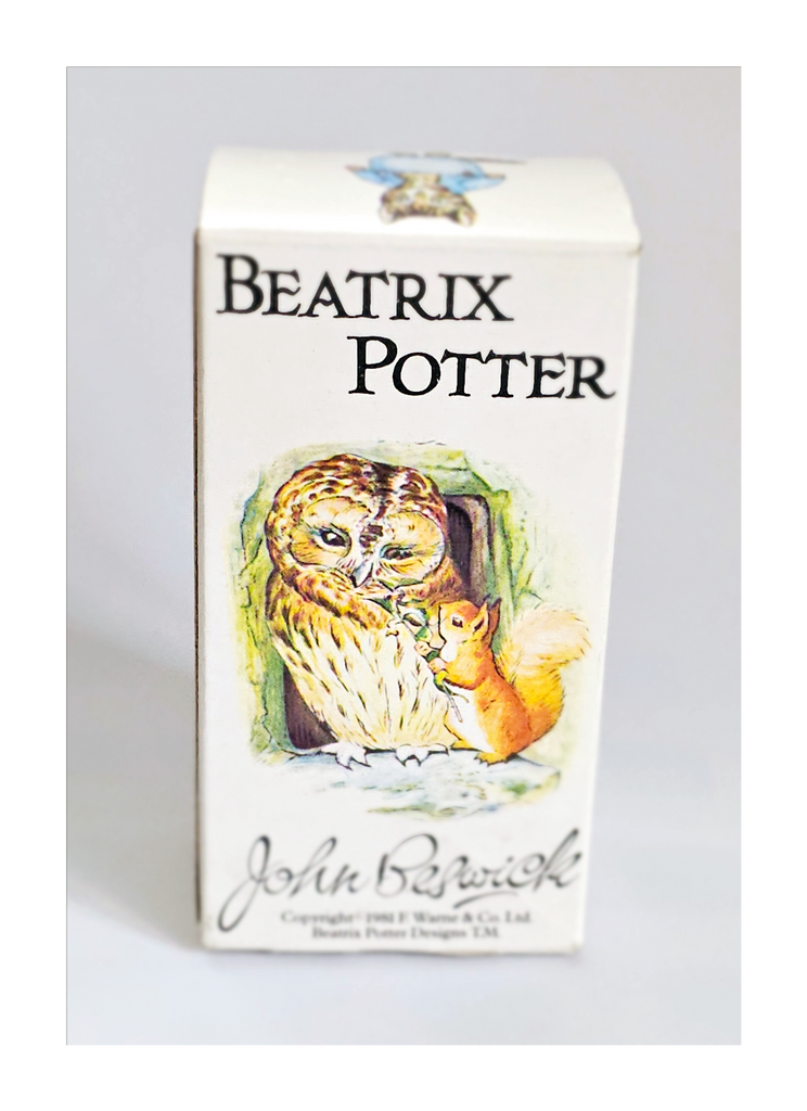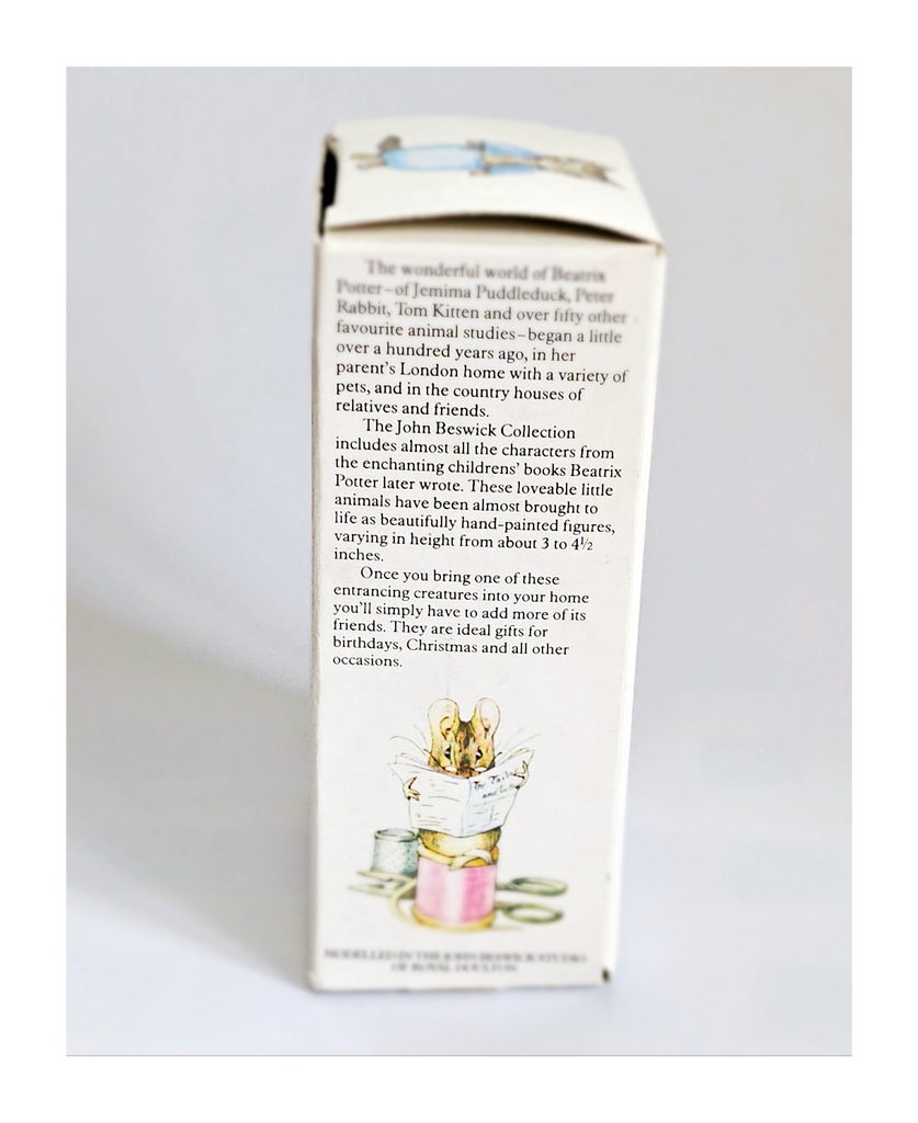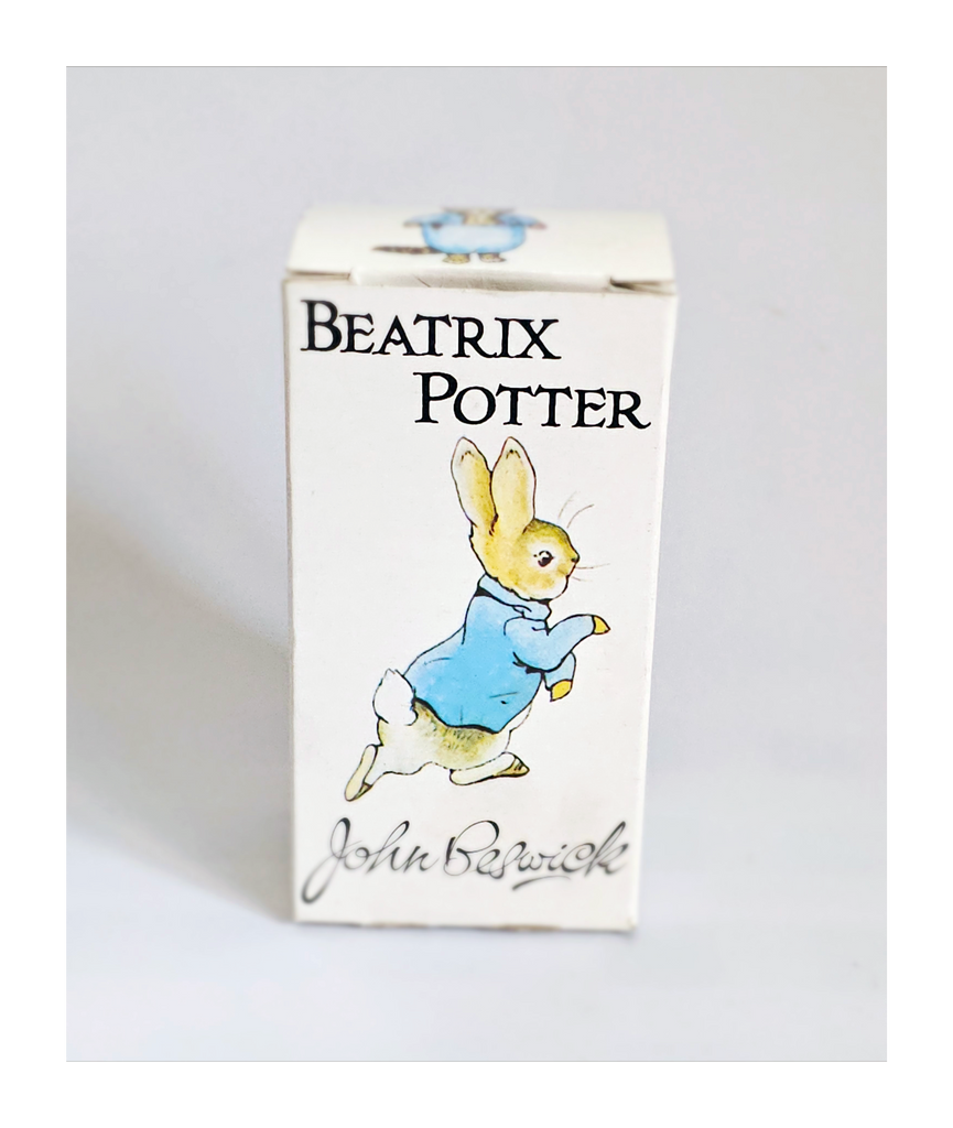 A vintage 1981 BEATRIX POTTER 'Peter Rabbit' Figurine from John Beswick Collection in its original box, Frederick Warne & Co., Studio of Royal Doulton. It weighs 113 g. Its measurements in its box are 6.5 cm width, 12.5 cm height, and 5 cm depth. In excellent condition. A great addition to your Beatrix Potter collection. Collectable. Collector's item.