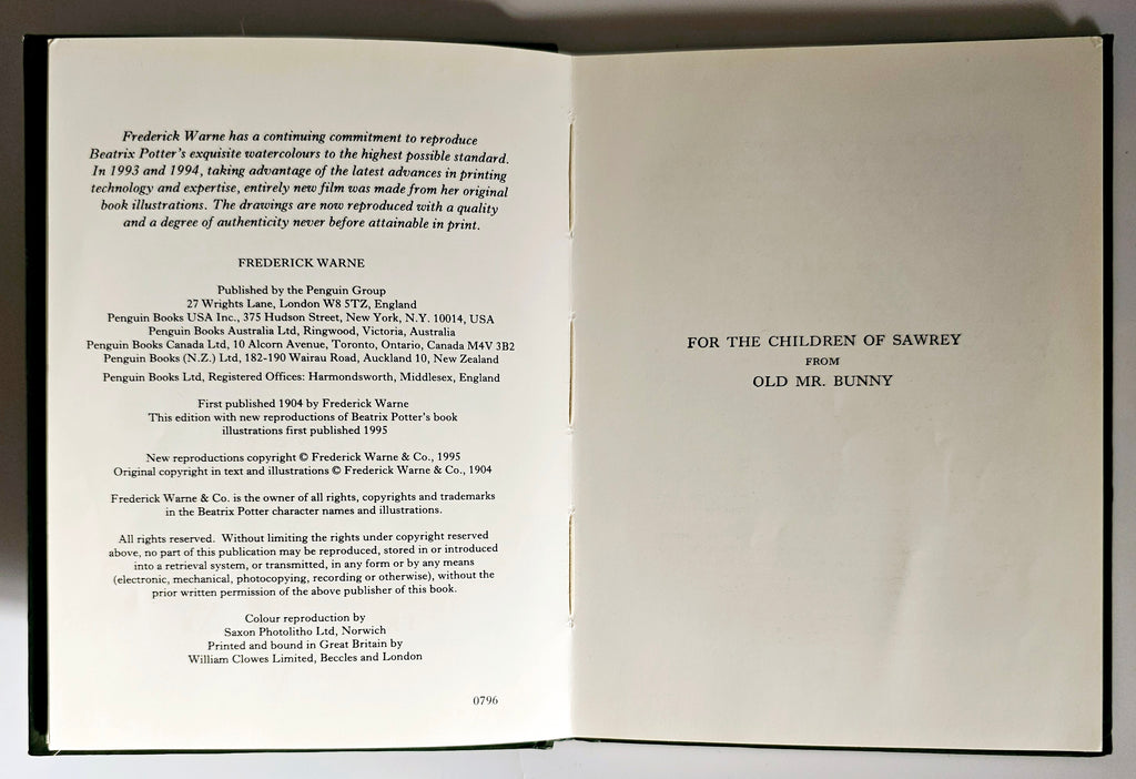 Vintage 1995 Beatrix Potter 'The Tale Of Benjamin Bunny', Frederick Wayne & Co.