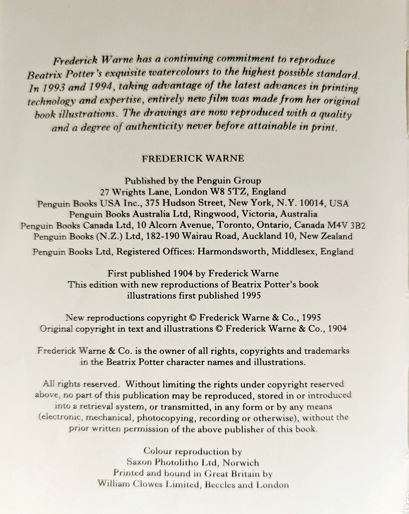 A vintage 1995 BEATRIX POTTER 'The Tale Of Benjamin Bunny', Frederick Warne & Co. It weighs 88g. Its measurements are 11cm width, 14.4cm length, and 0.5 cm depth. In excellent condition. A great addition to your Beatrix Potter collection. Collectable. Collector's item.