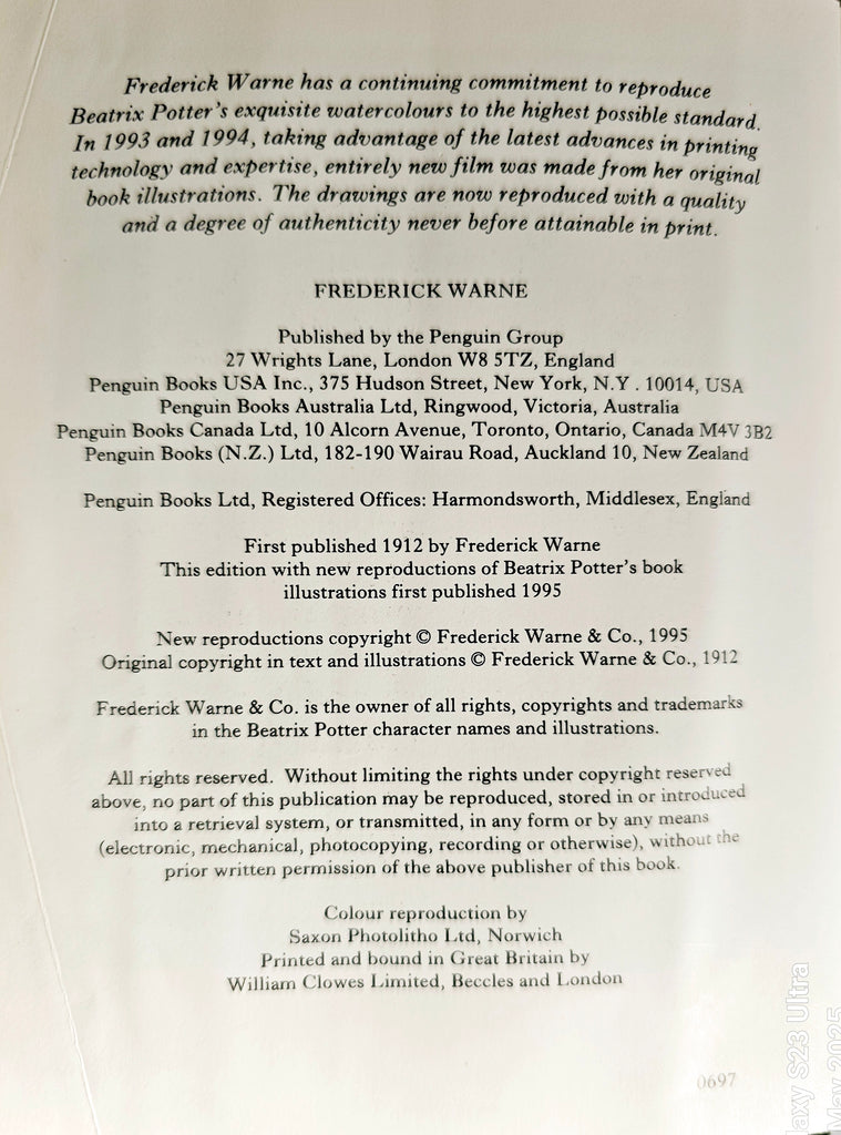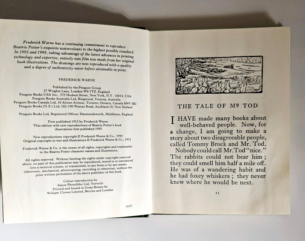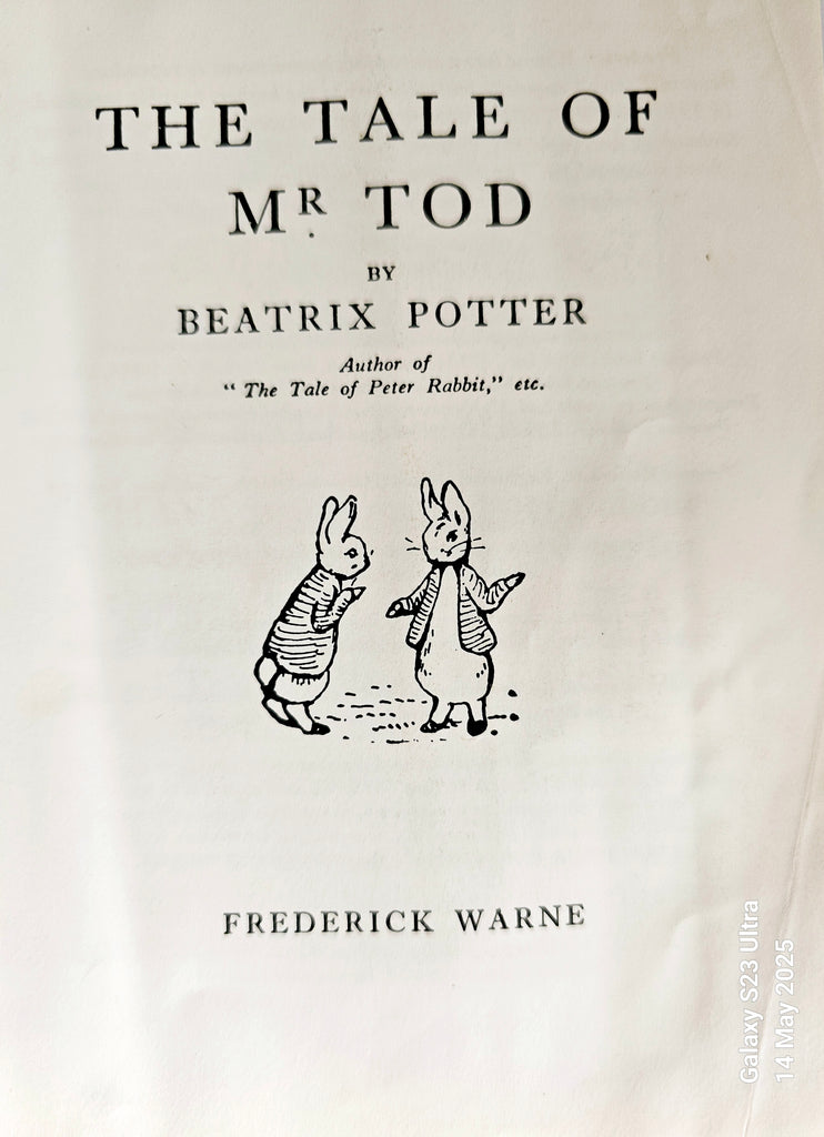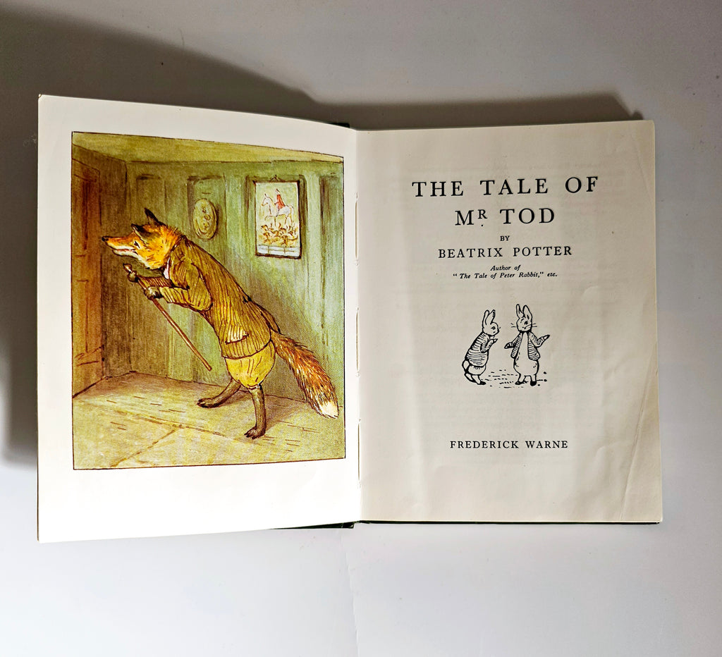 A vintage 1995 BEATRIX POTTER 'The Tale Of Mr. Tod', Frederick Warne & Co. It weighs 111g. Its measurements are 11cm width, 14.4cm length, and 0.5cm depth. In excellent condition. A great addition to your Beatrix Potter collection. Collectible. Collector's item.