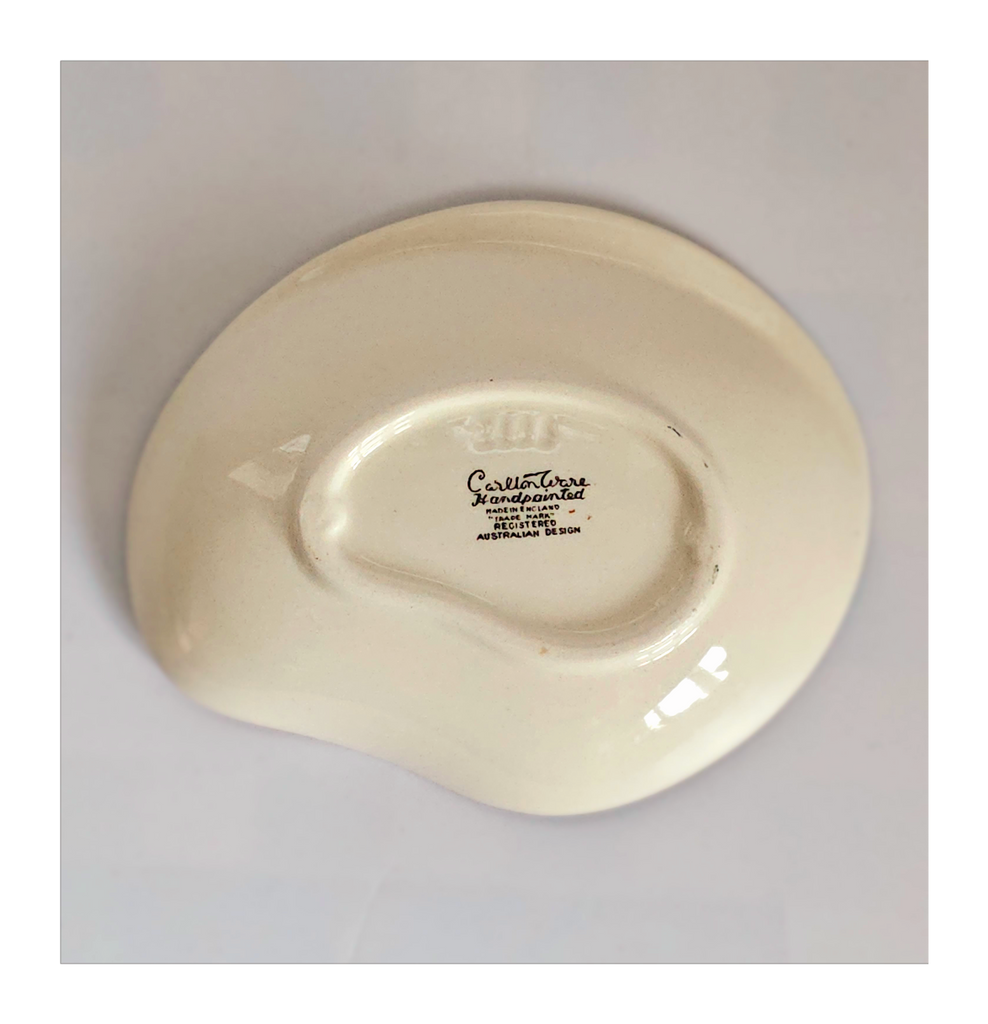 A vintage 1960's Australian design Carlton Ware windswept design pin dish / trinket dish. It weighs 90 g. Its measurements are 12 cm width, 10 Cm depth, and 2.5 cm height. In excellent condition. No chips, no cracks, and no restoration. A great addition to your Carlton Ware / Pin dish / Trinket Dish collection. Collectable. Collector's item.