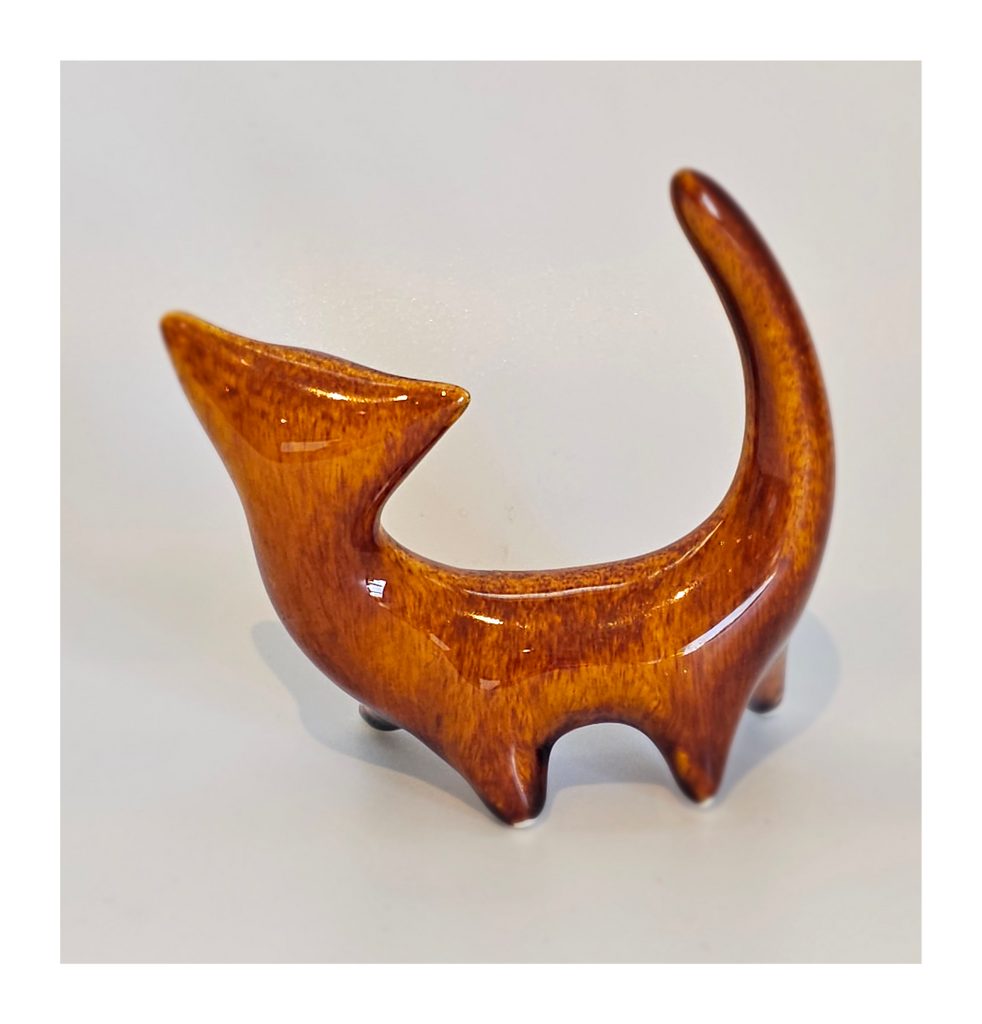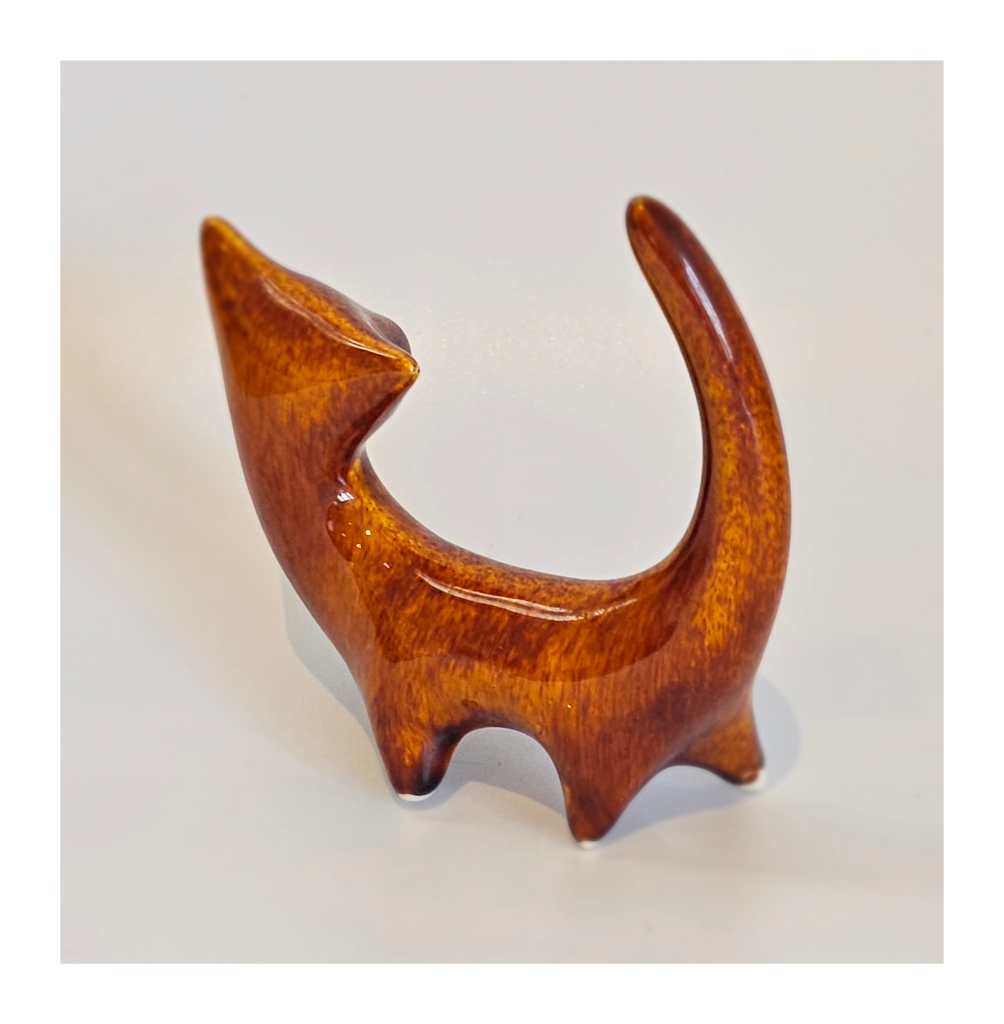 A beautiful contemporary design hand made Studio Pottery glazed ceramic cat statuette. It weighs 63 g. Its measurements are 10 cm height, 8.5 cm width, and 2 cm depth. In perfect condition, no cracks, no chipping. A great addition to your Studio Pottery / Cat collection. Collectable. Collector's item.