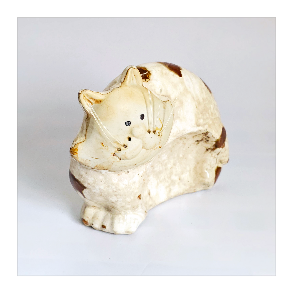 A beautiful contemporary design hand made Studio Pottery glazed ceramic cat statuette / ornament. It weighs 314 g. Its measurements are 15 cm length, 7 cm width and 11.5 cm height. This looks like a Mom and kitten combination, but the kitten ornament is missing, hence the price is reduced. Apart from the missing kitten, in perfect condition, no cracks, no chipping. A great addition to your Studio Pottery / Cat collection. Collectable. Collector's item.