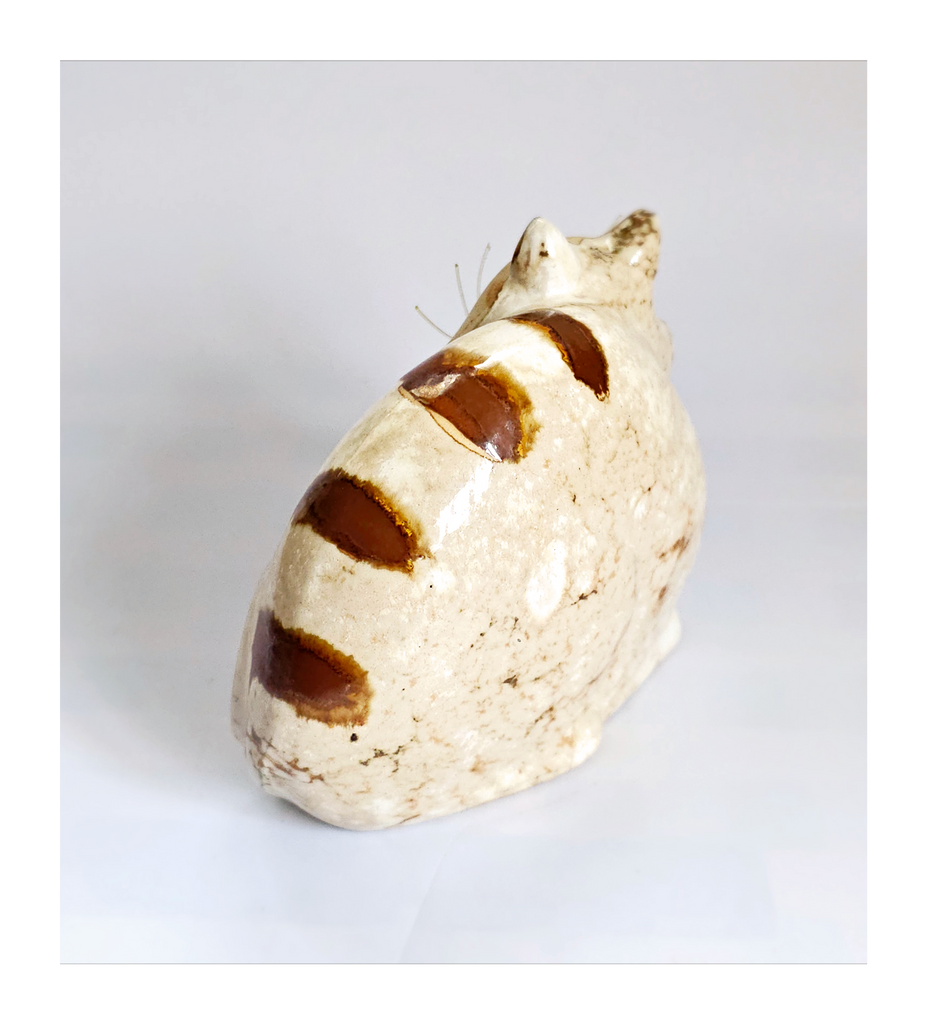 Contemporary Design Hand Made Studio Pottery Glazed Ceramic Cat Statuette / Ornament