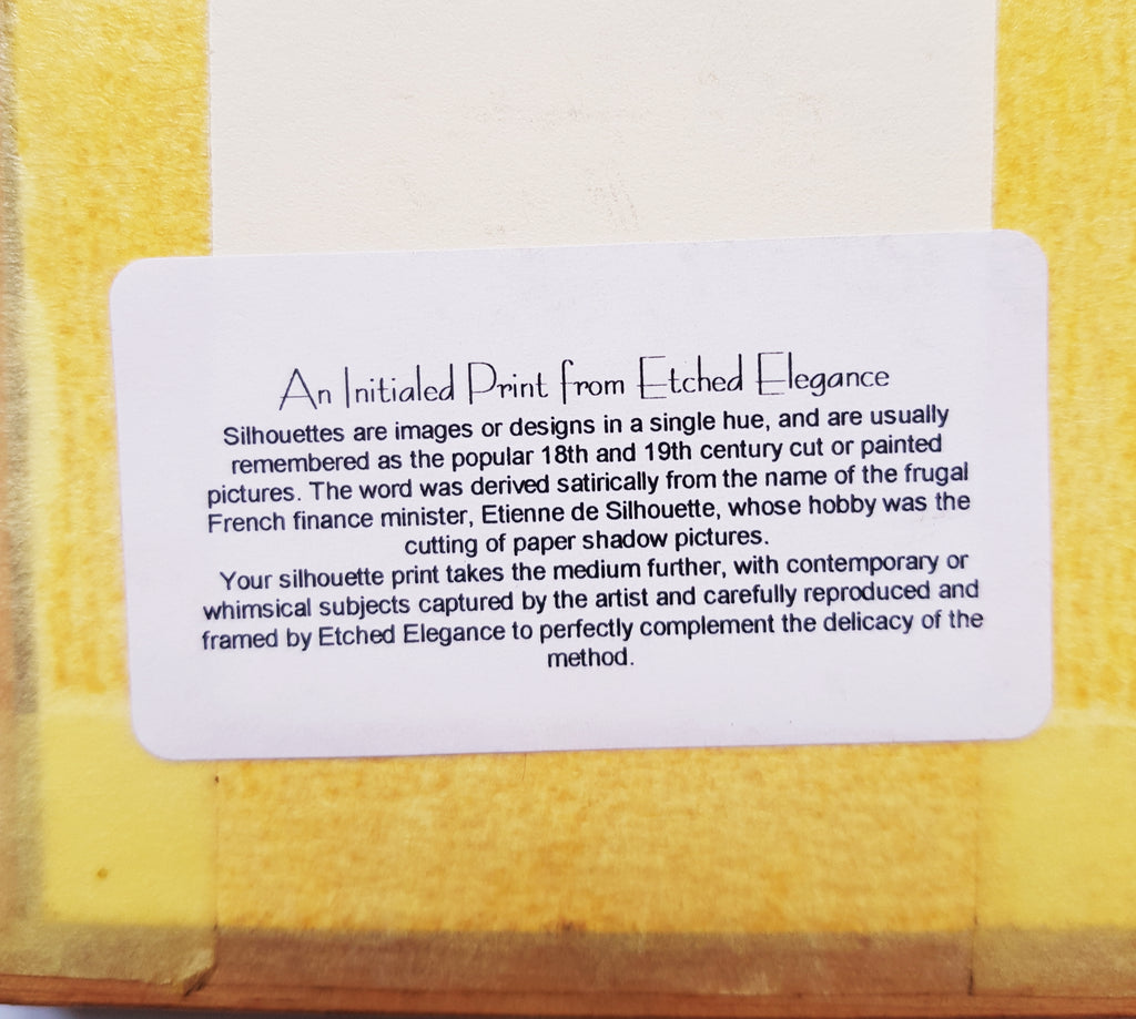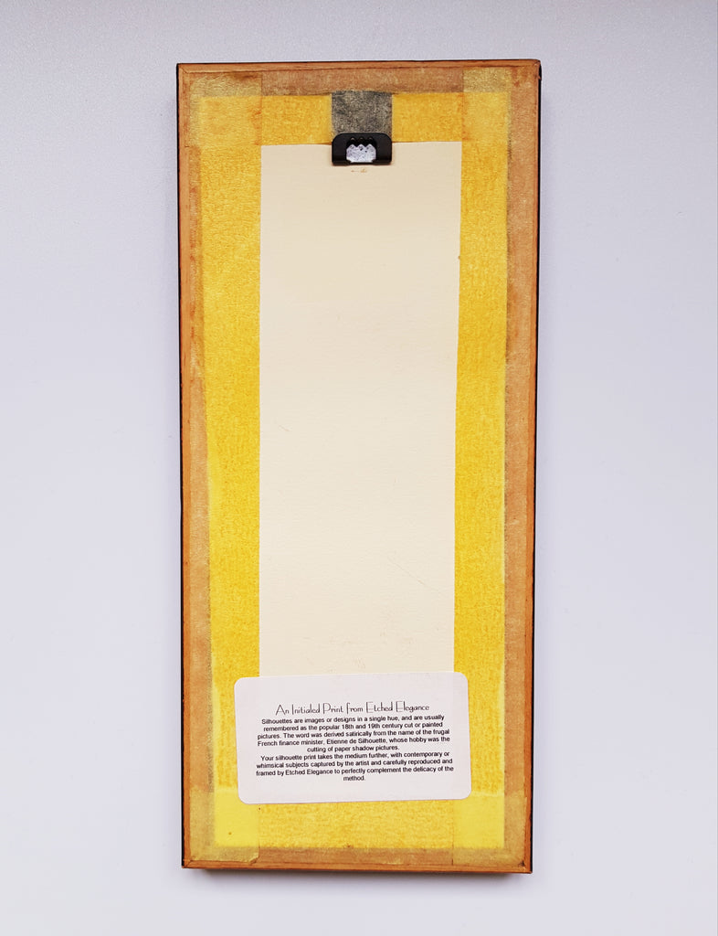 This silhouette print takes the medium further, with contemporary subjects (cat with herb pots in this case) captured by the artist and carefully reproduced and framed by Etched Elegance to perfectly complement the delicacy of the method.