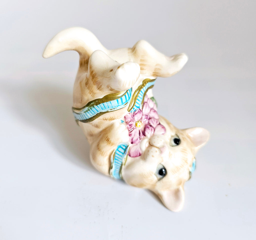 Vintage 1980's Fitz & Floyd Essentials "Kitten Kaboodle" Hand-Painted Ceramic Cat Figurine