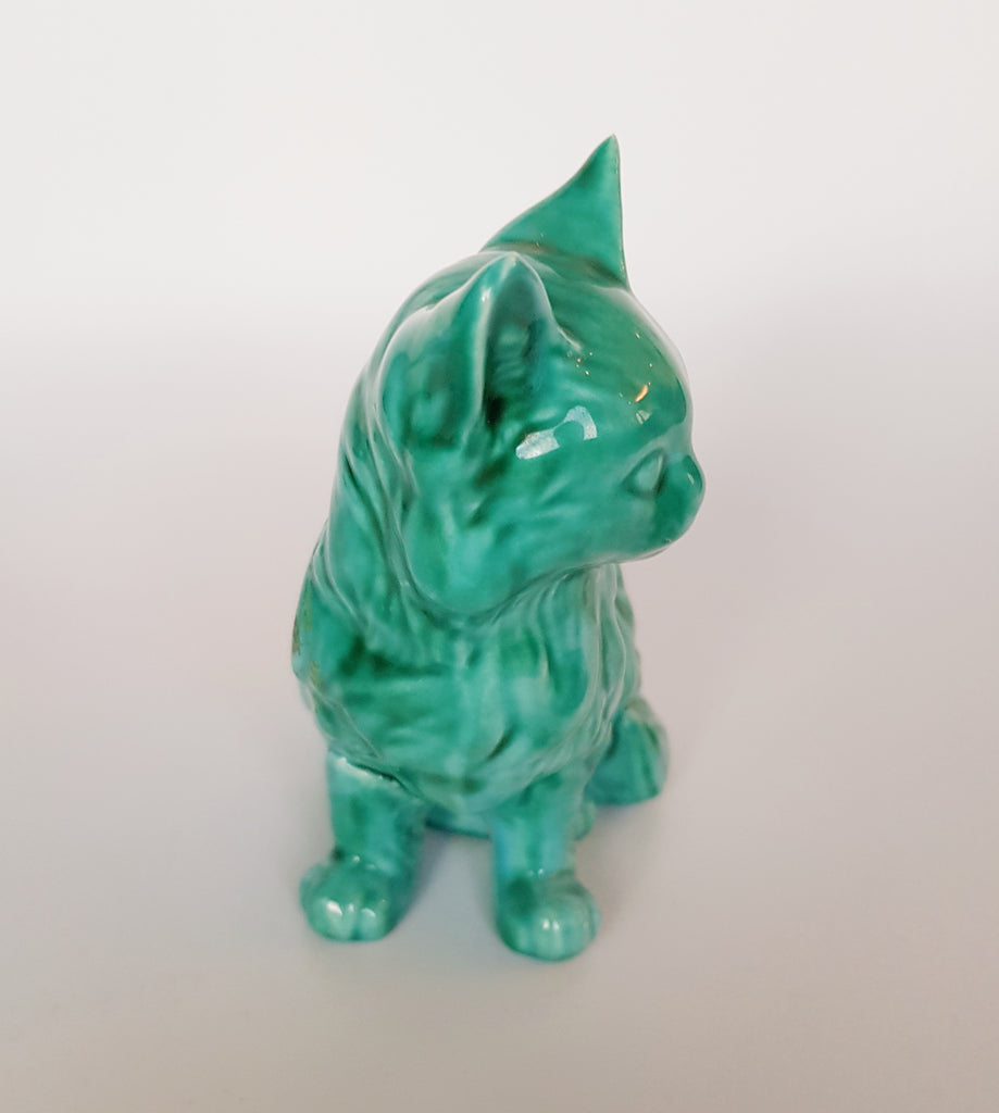 A beautiful vintage Retro Collectable Kitsch Anglia glazed ceramic studio art pottery turquoise cat - AP201