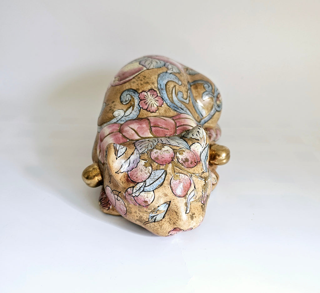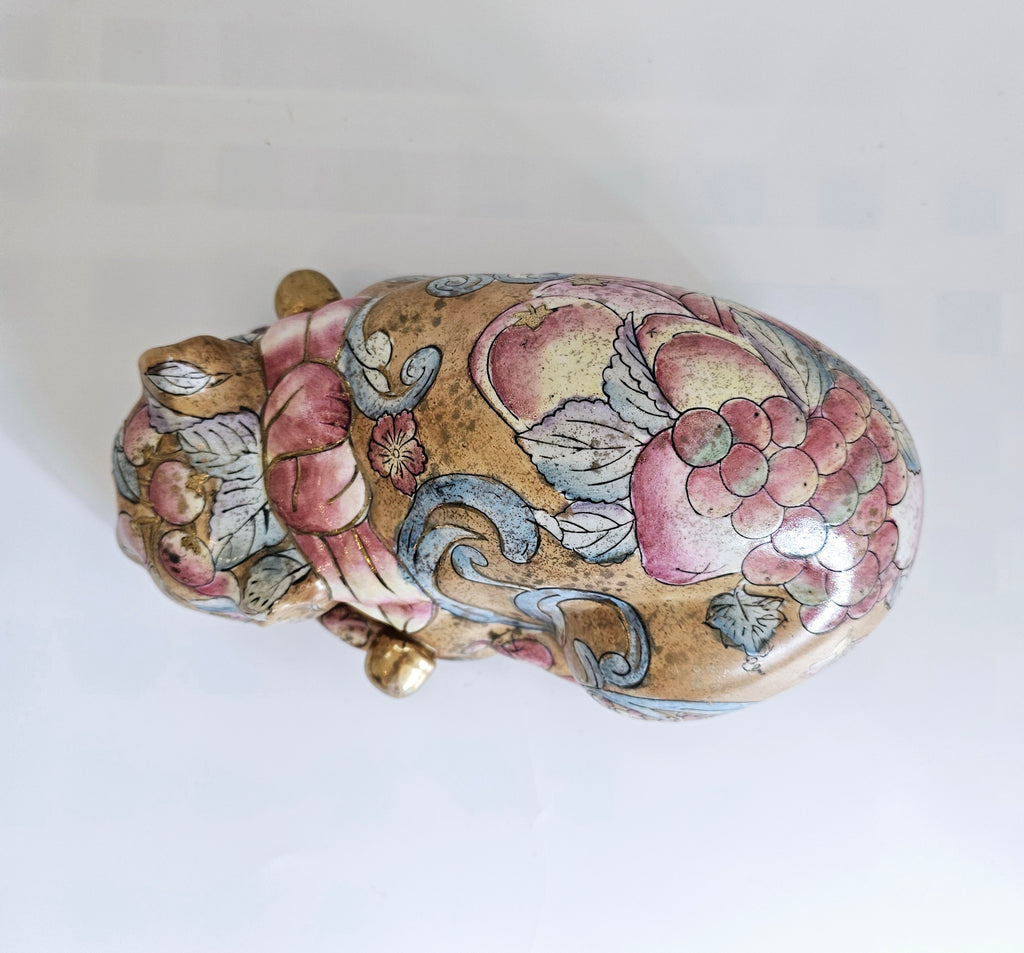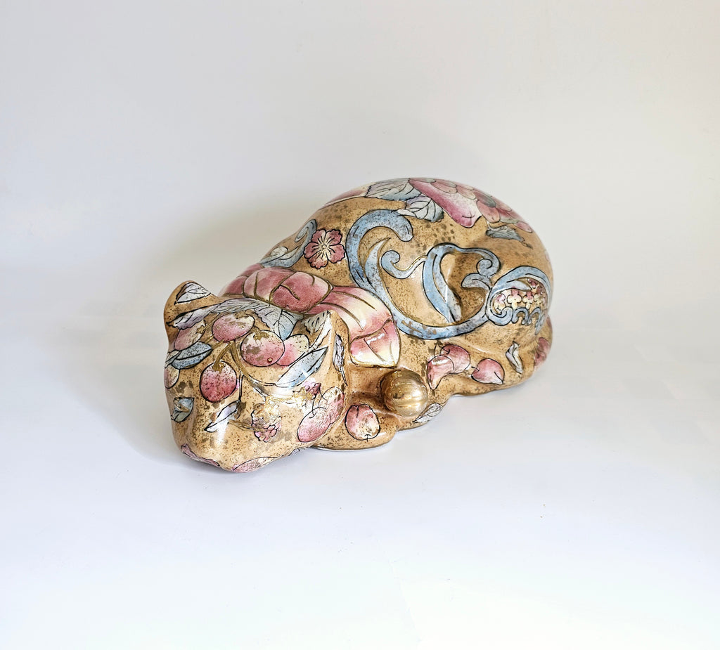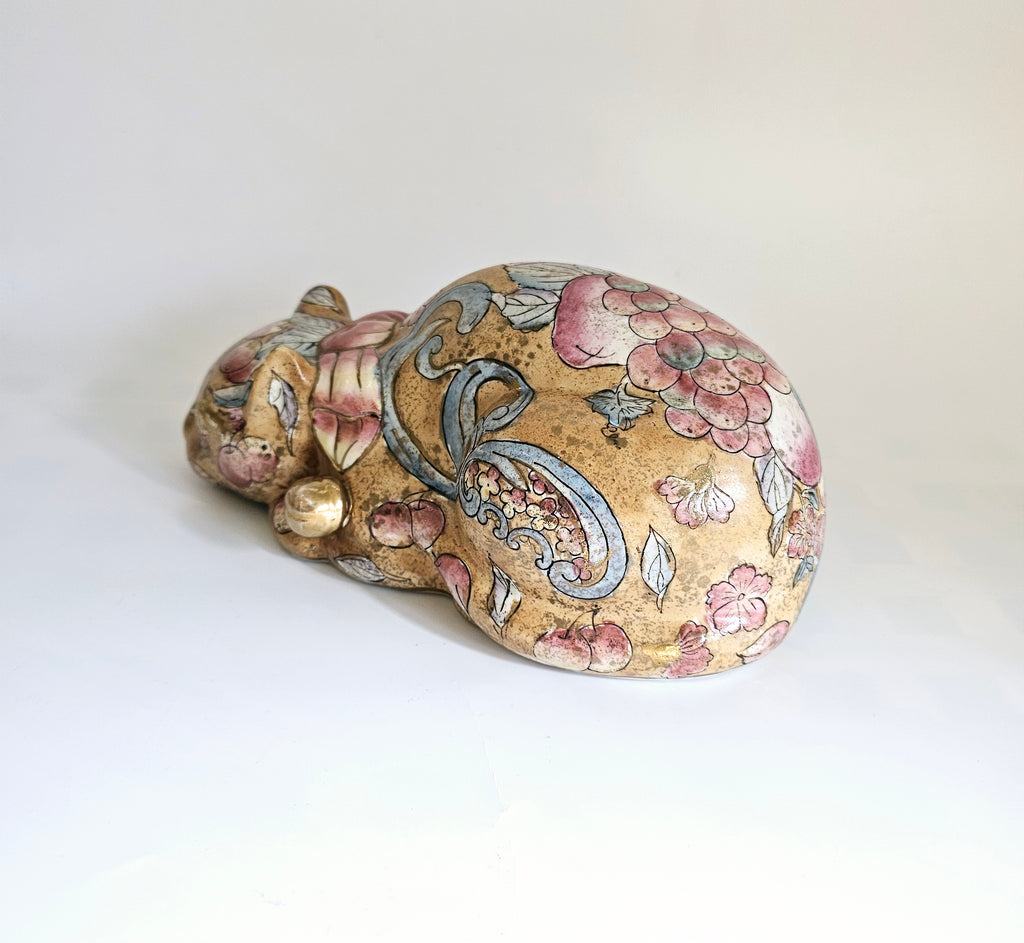 Rare Vintage 1970's Chinese Porcelain Hand-Painted Sleeping Cat Figurine