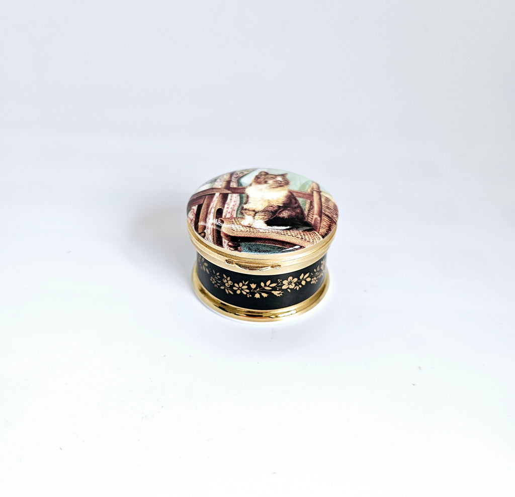Vintage Falcon China Hand-Crafted Jewellery Box / Trinket Box Featuring a Cat sitting on a Chair