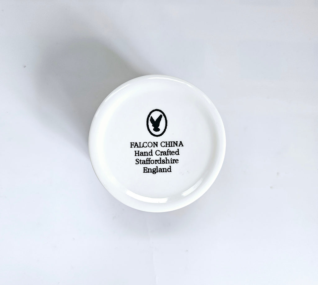 A vintage Falcon China hand-crafted Jewellery Box / Trinket Box featuring a cat sitting on a chair. It weighs 79g. Its measurements are 5.4cm diameter and 3.5cm height. In excellent condition, no chips and no cracks. A great addition to your Falcon China / Jewellery Box / Trinket Box collection. Collectible. Collector's item.