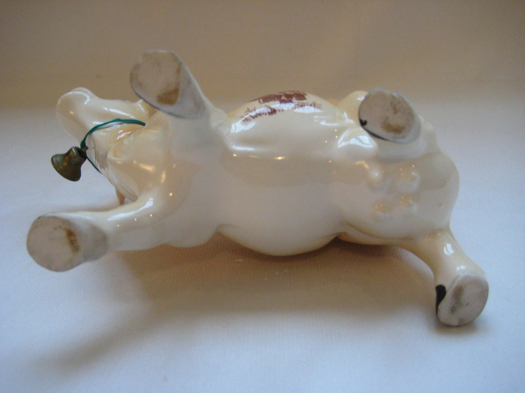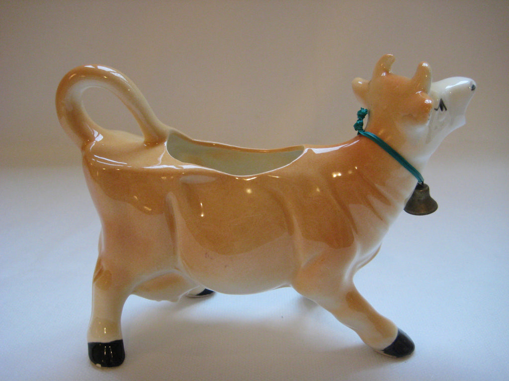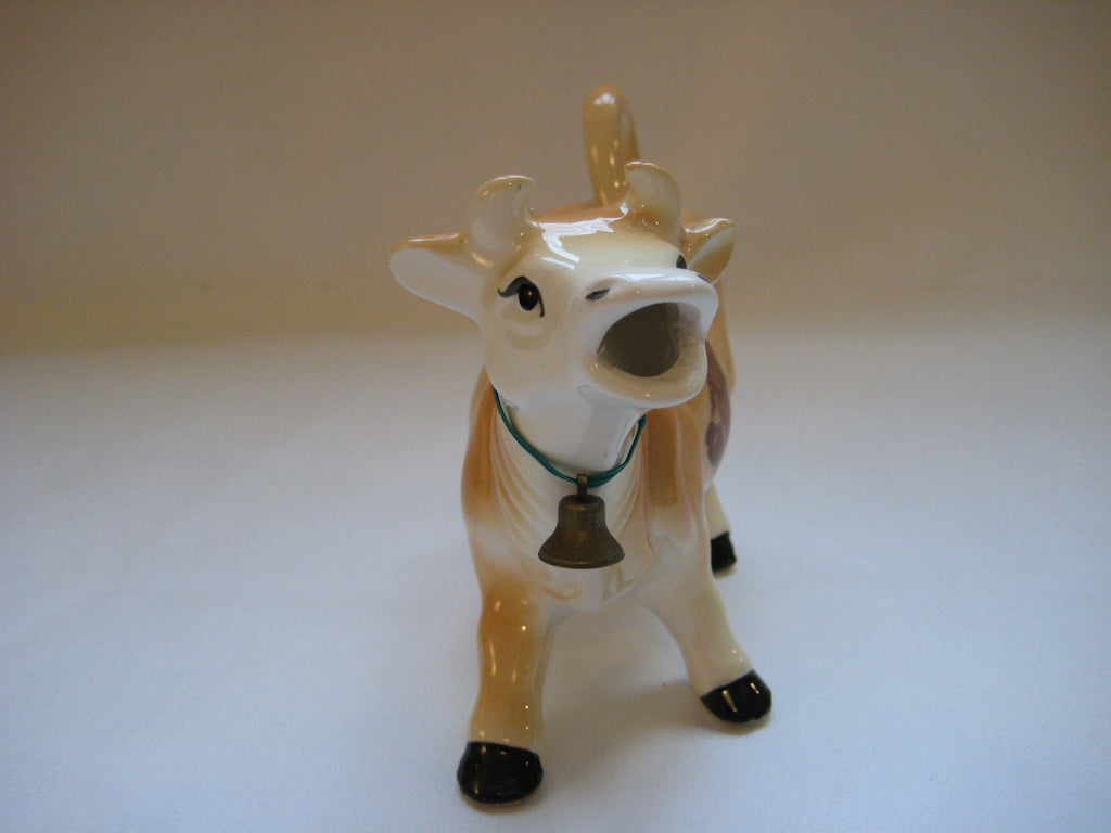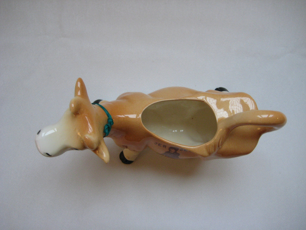 A very cute vintage 1950's ceramic Jersey cow creamer with a cow bell around its neck. It weighs 0.2 kg. Its size is 12 cm H, 16 cm W, 6 cm D. It is in perfect condition with no cracks, chips or crazing. A collector’s item. Free shipping to UK & Northern Ireland, only £5 to Europe and £10 to the rest of the world.