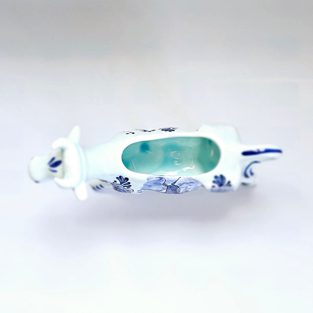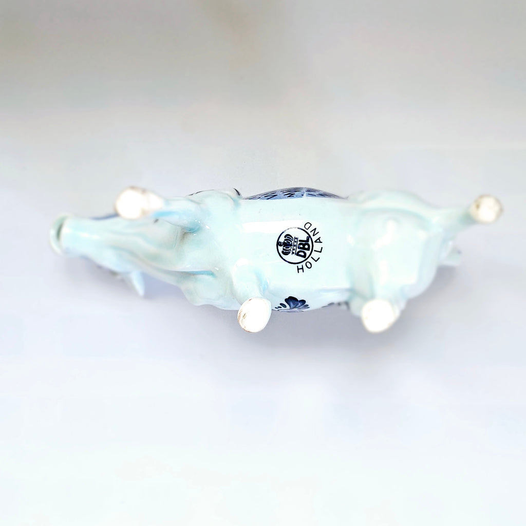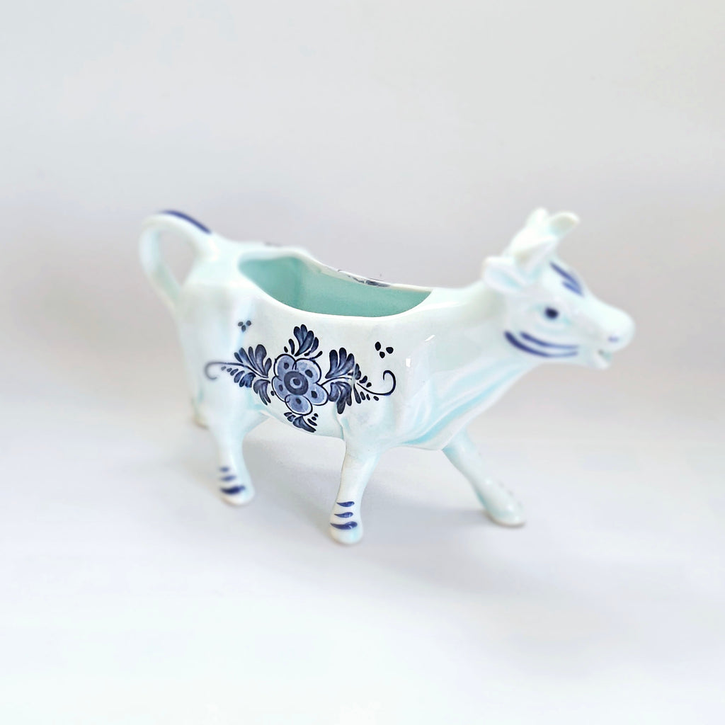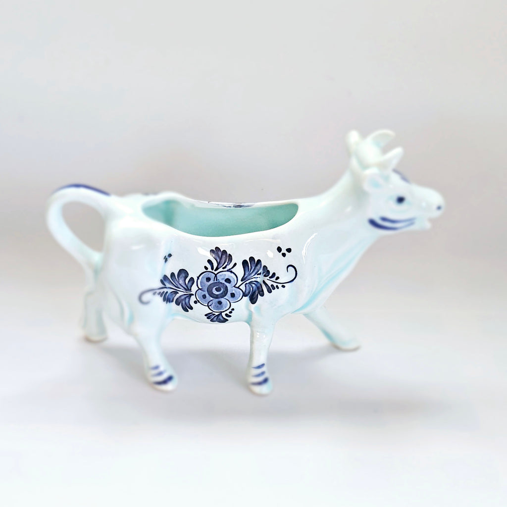 A vintage Dutch Delft Blue hand painted ceramic DBL Holland cow creamer. It weighs 160 g. Its measurements are 17 cm length, 5 cm depth and 10.5 cm height. In excellent condition, no chips, no cracks and no restoration. A great addition to your Cow Creamer / Delft Blue Pottery collection. Collectable. Collector's item.