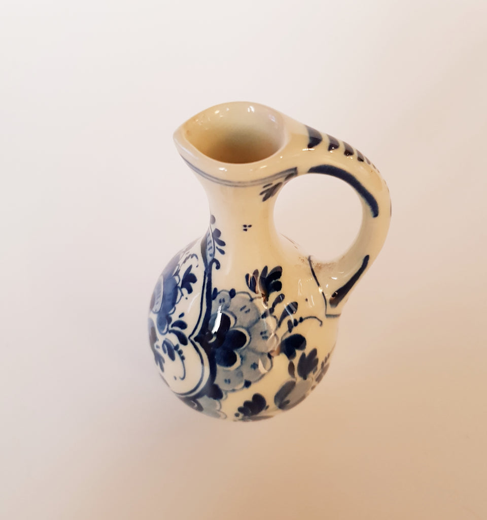 A rare vintage Delft Blue mini jug / pitcher. A perfect addition to your Delft Pottery / Jug collection. It weighs 86 g. Its measurements are Height 10 cm, Diameter 6.5 cm at its widest. In perfect condition, no cracks, no chipping.Collectable. Collectors' item.