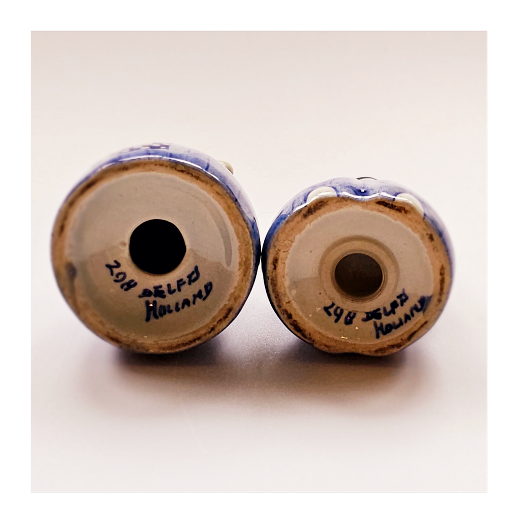 A vintage Delft Blue Man & Woman Salt and Pepper Shaker. It's marked " 298 DELFT HOLLAND" at the bottom. The items are in a very good condition with no chips or cracks, but the plastic lead at the bottom of the pepper holder is missing as seen in the image. The items weigh 68 g. The measurement of each is 6.5 cm Height and 4 cm Diameter at the base. A great addition to your salt and pepper shaker collection. Collectable. Collector's item.