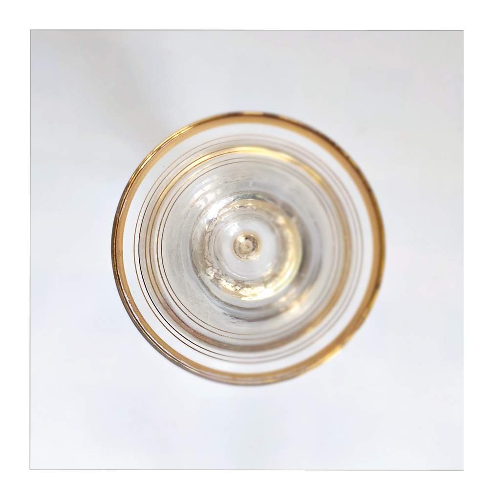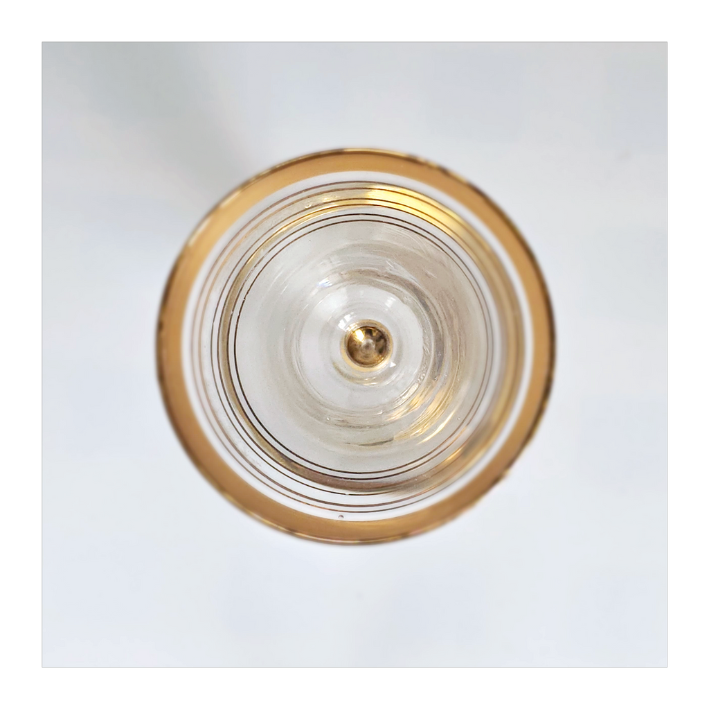 Vintage 1930's Art Deco set of 6 Red Wine Glasses with Gold Bands on Stem, Rank and Foot