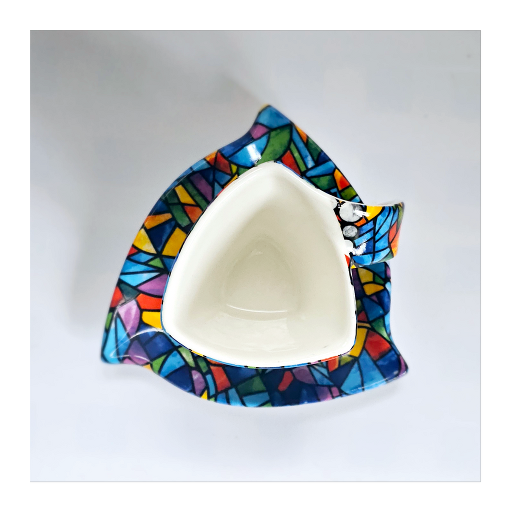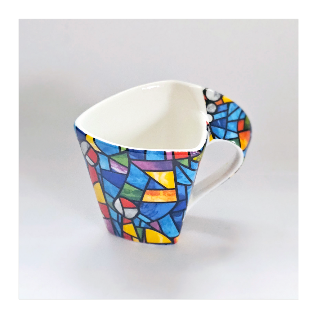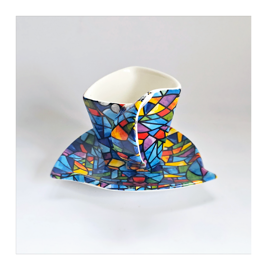 Beautiful Vintage Art Trencadis S.L. Barcelona Glazed Ceramic Gaudi Mosaic pattern Cup and Saucer
