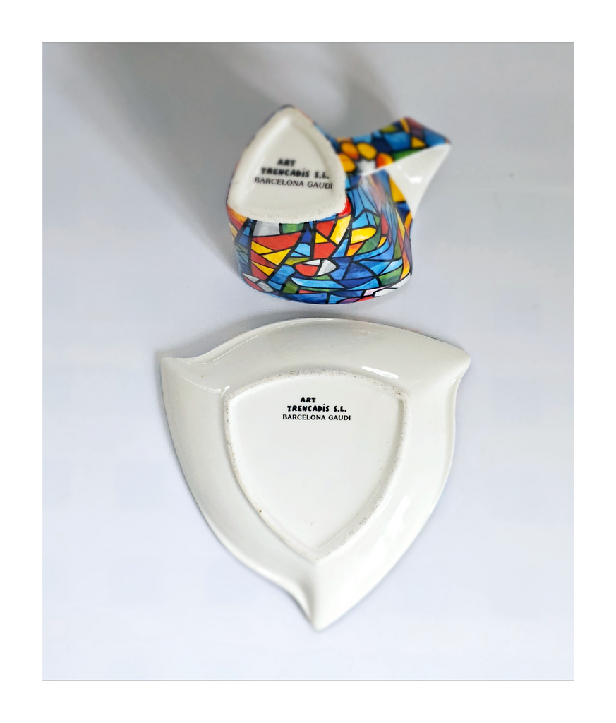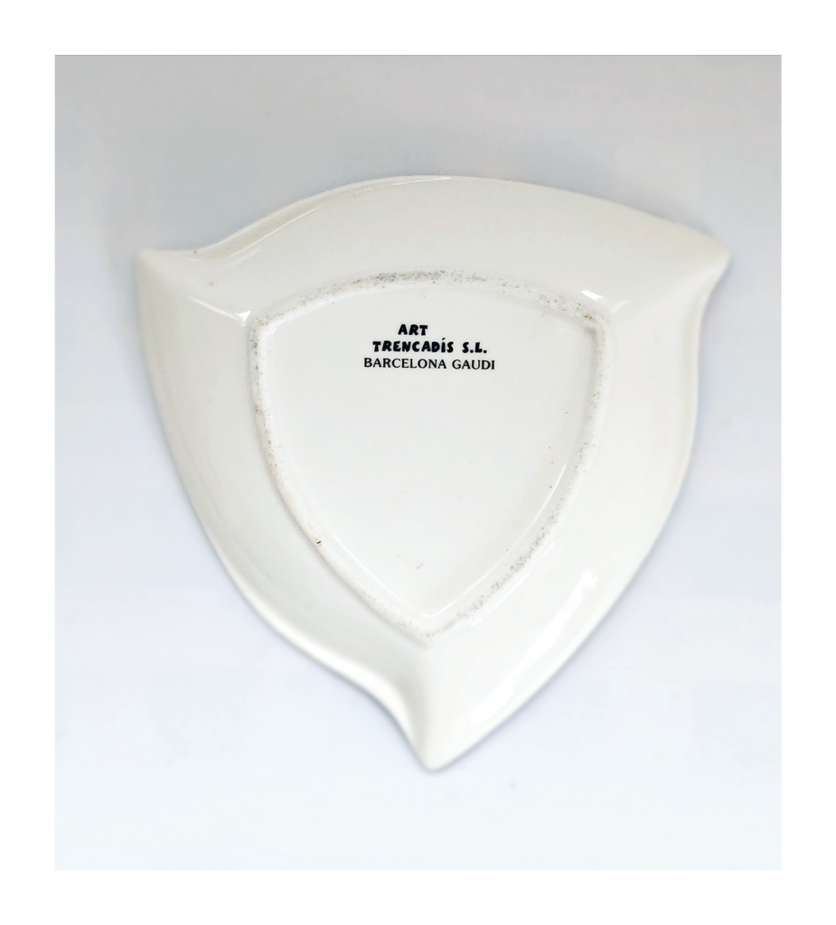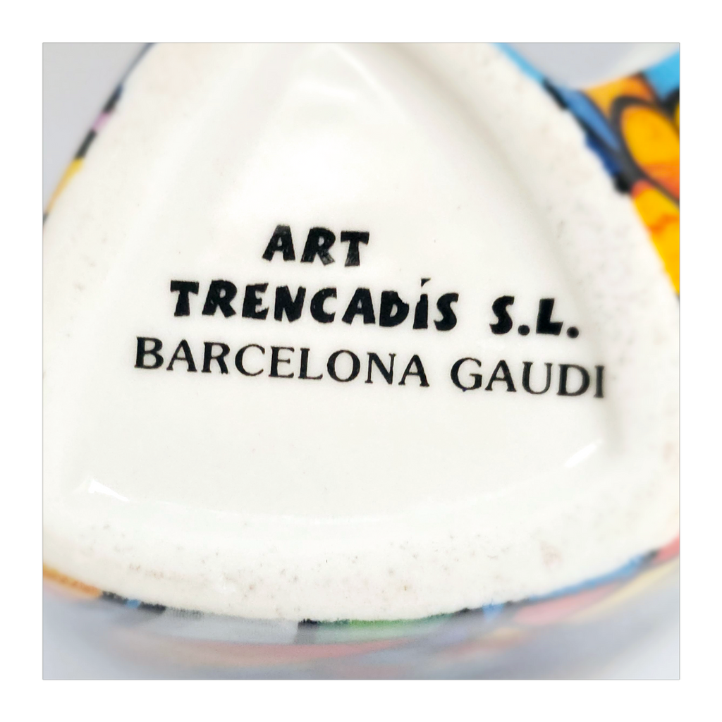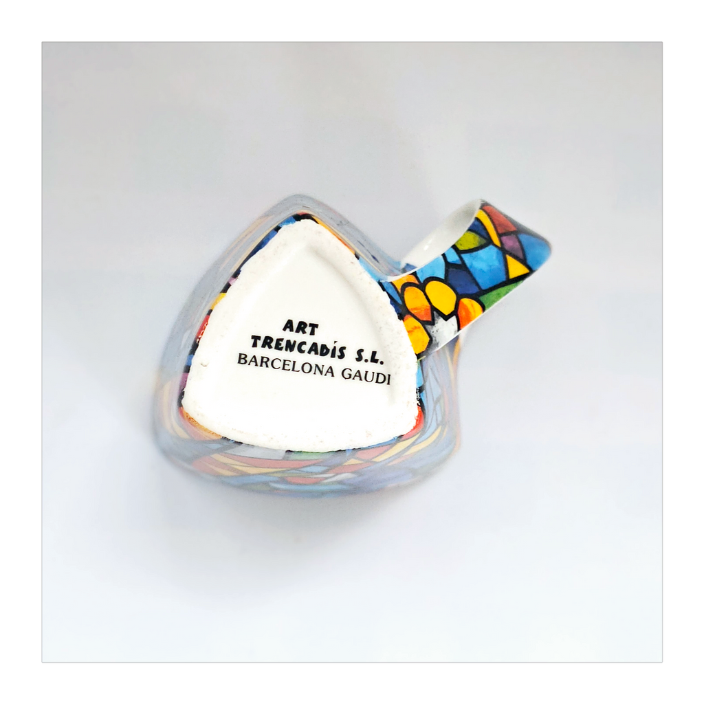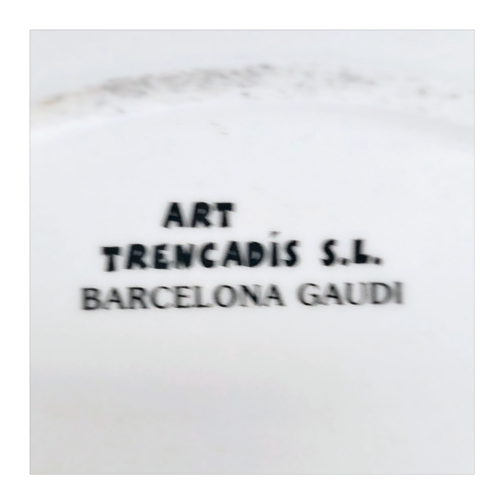 Beautiful Vintage Art Trencadis S.L. Barcelona Glazed Ceramic Gaudi Mosaic pattern Cup and Saucer. In excellent condition, no cracks, no chips and no crazing. Together they weigh 298 g. The saucer measures 13 cm length and 13 cm width. The cup measures 9 cm width at its widest and 8 cm height. A great addition to your Cup and Saucer collection. Collectable. Collector's Item.