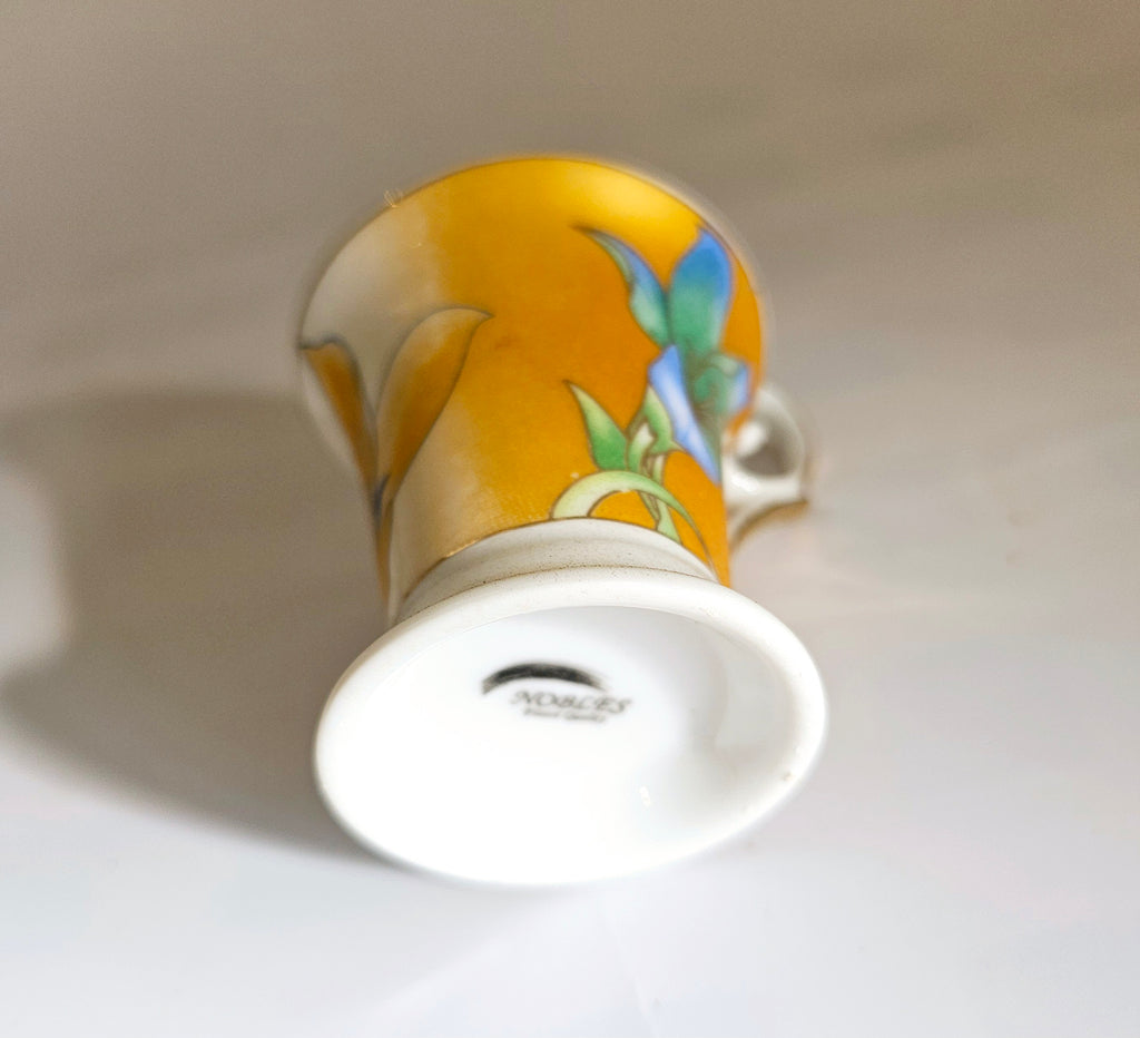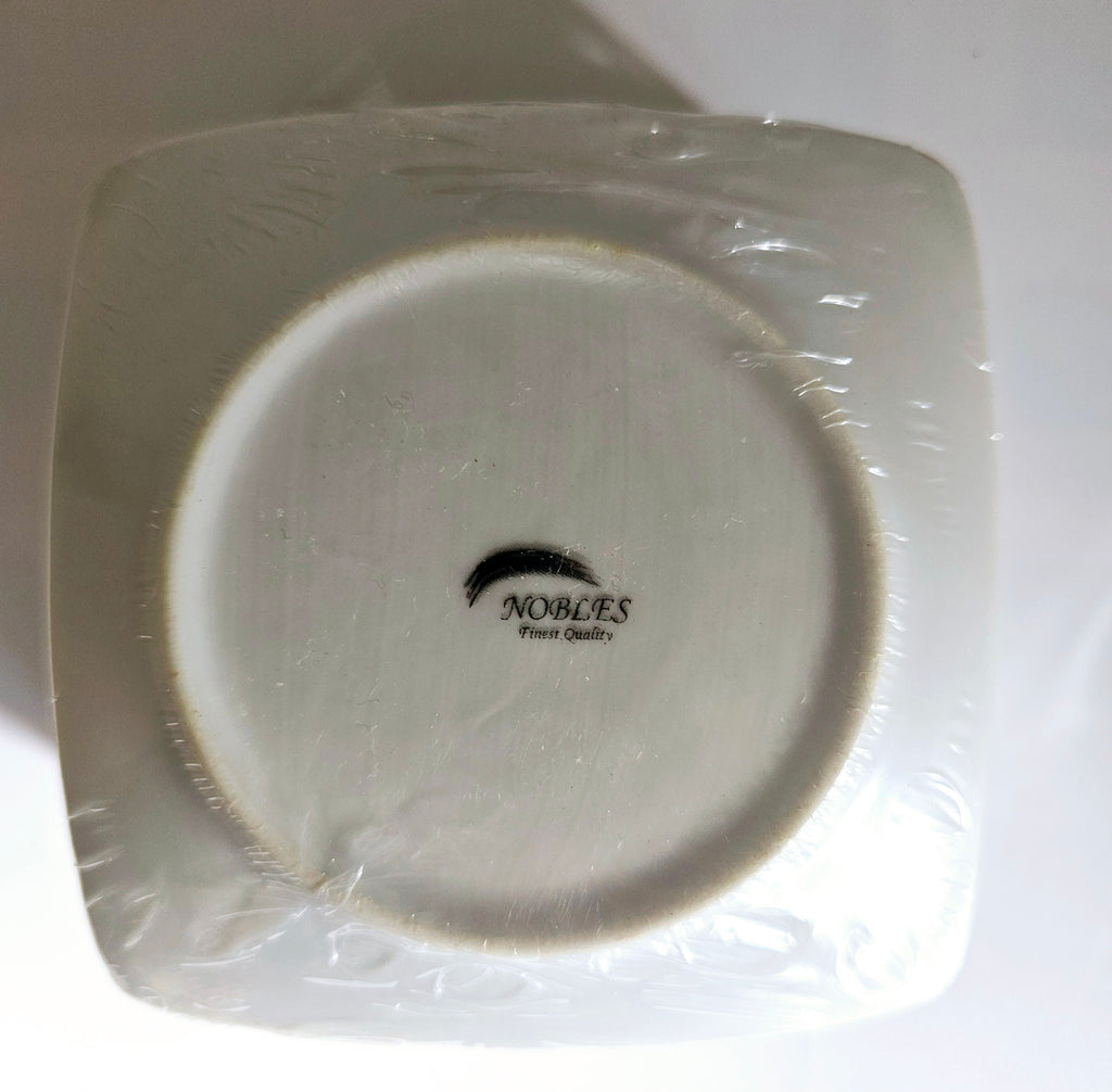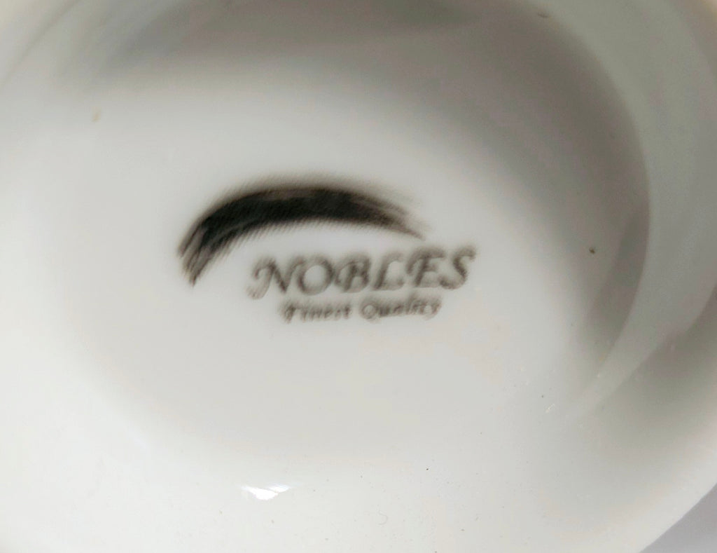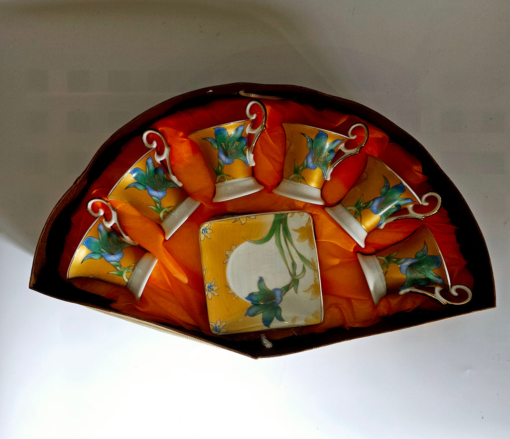 A rare vintage 1970's elegant and stylish contemporary design tea and coffee set in its original box by Nobles Finest Quality, Japan. Each cup and saucer weighs 150.30g. The box set weighs 1138g. The measurements of each cup is 8cm height and 7.5cm width at its widest. The measurement of each saucer is 10cm x 10cm. In excellent condition, no chips, no cracks. A great addition to your contemporary Tea and Coffee set collection. Collectible. Collector's Item