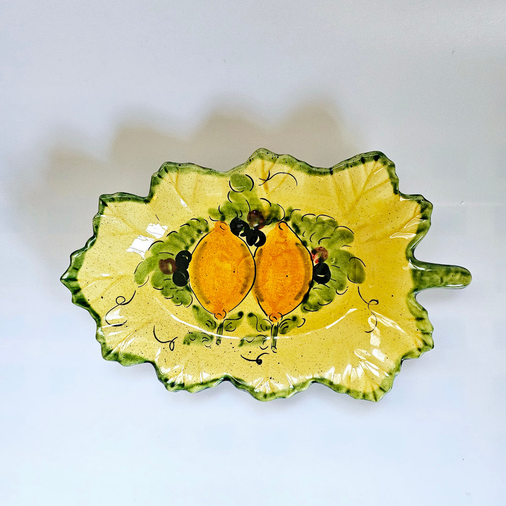 Vintage Italian Majolica Leaf Dish with Lemons and Olives pattern