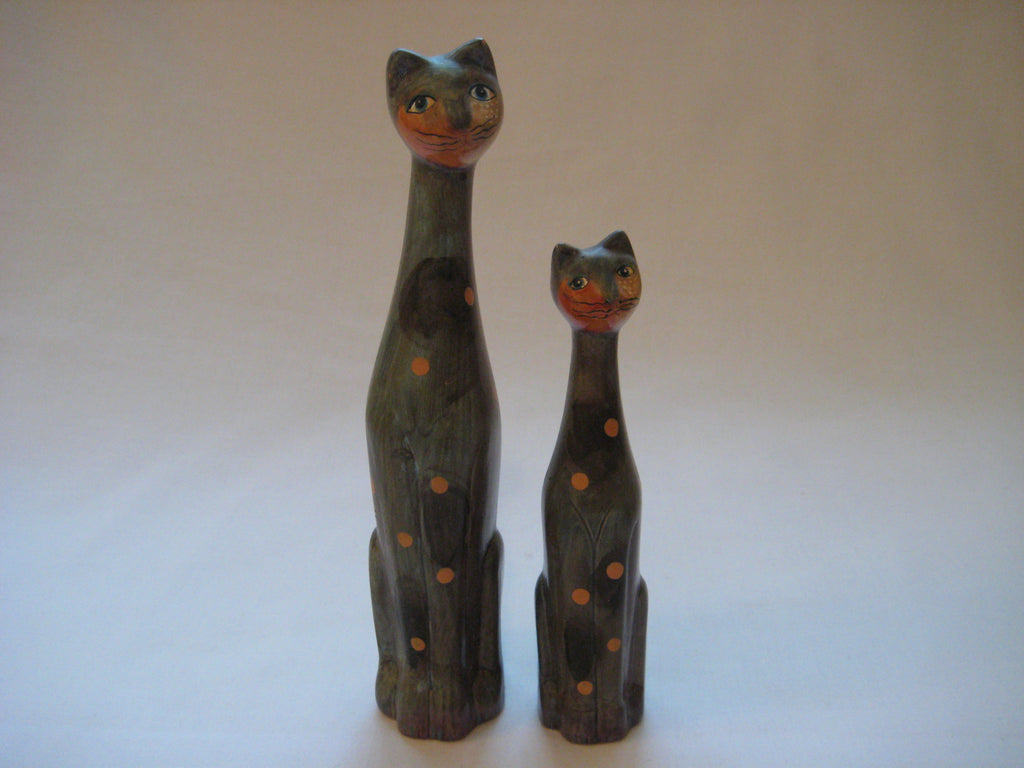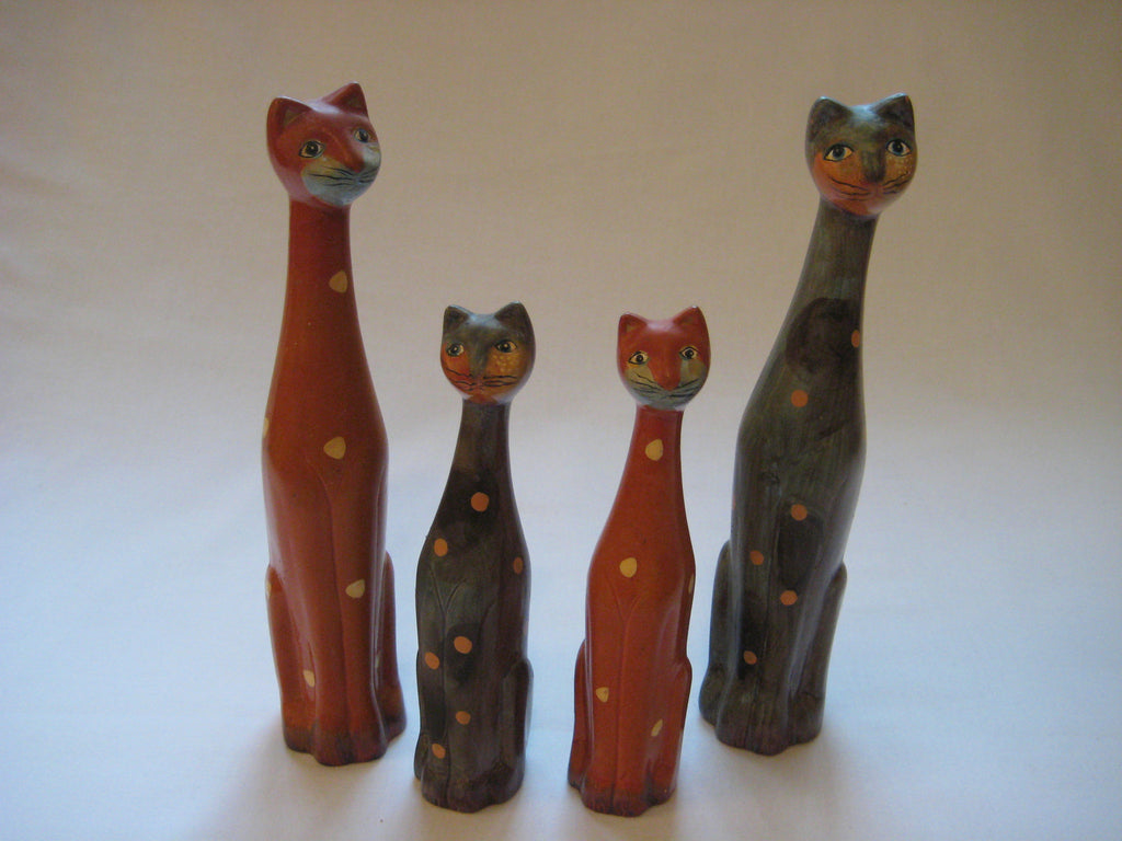 A family of gorgeous ceramic cat ornaments. Makes a great addition to your cat collection. They weigh 0.39 kg. the height and diameter of the big cats is 19.5 by 4.5 cm, the height and diameter of the small cats is 14.5 by 3.5 cm.