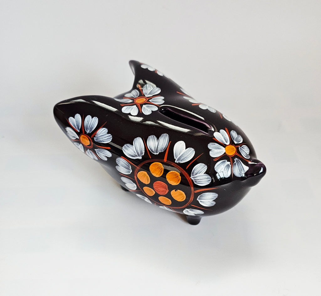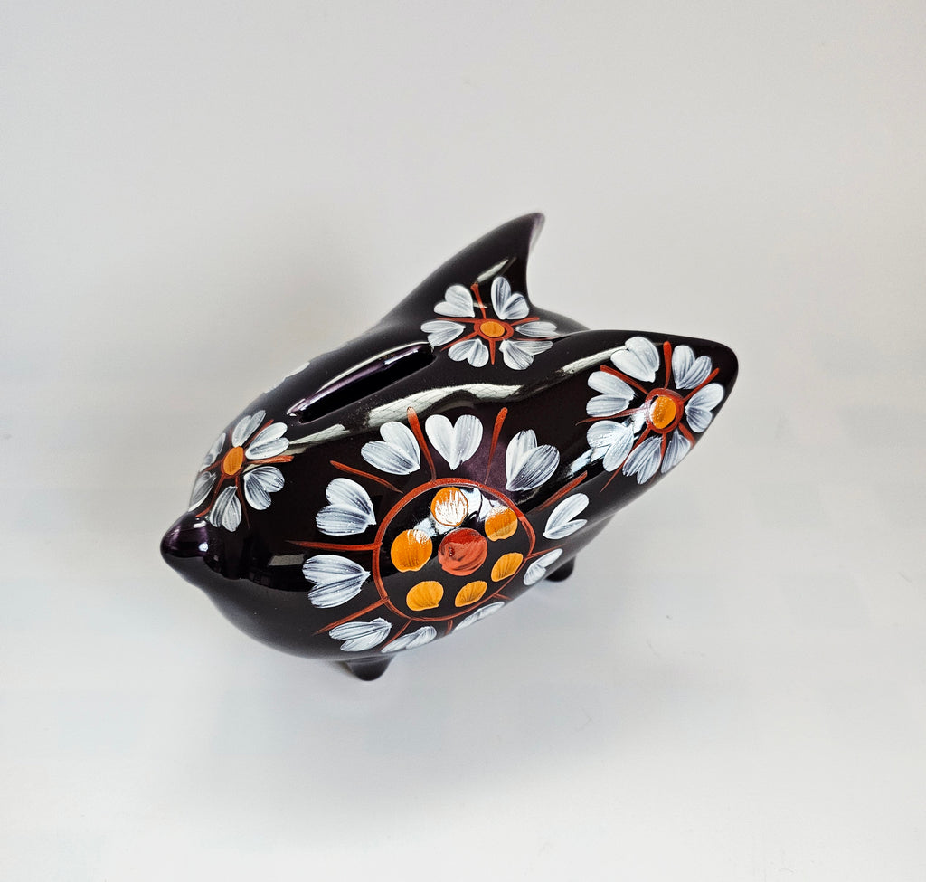 A rare vintage 1960's Arthur Wood Pottery glazed ceramic hand-painted Piggy Bank / Coin Bank-model number 5272. It weighs 340g, its measurements are 16cm width at its widest, 9cm depth, and 9cm height. In excellent condition, no chips, no cracks, and no restoration. A great addition to your Piggy Bank / Coin Bank collection. Collectible. Collector's item.