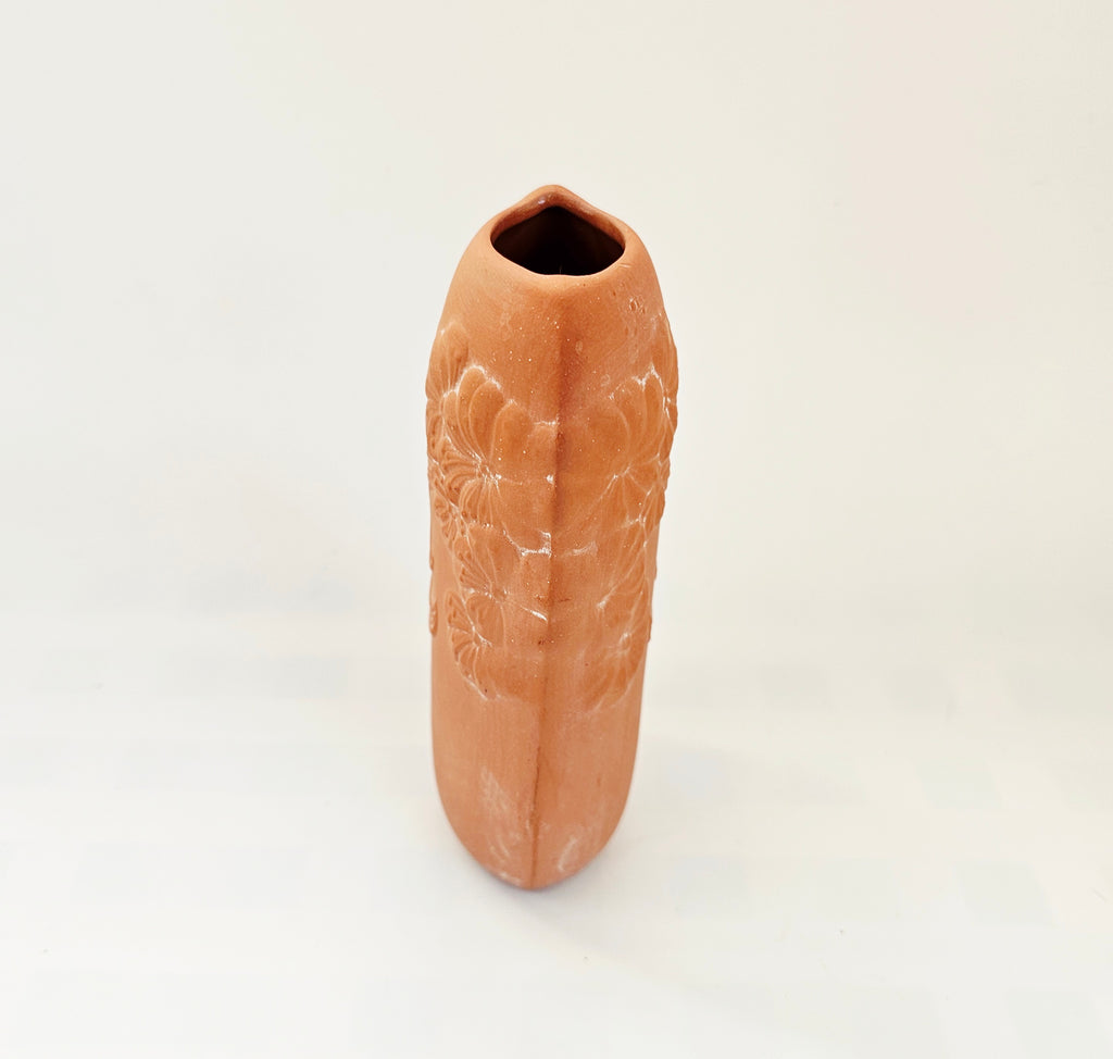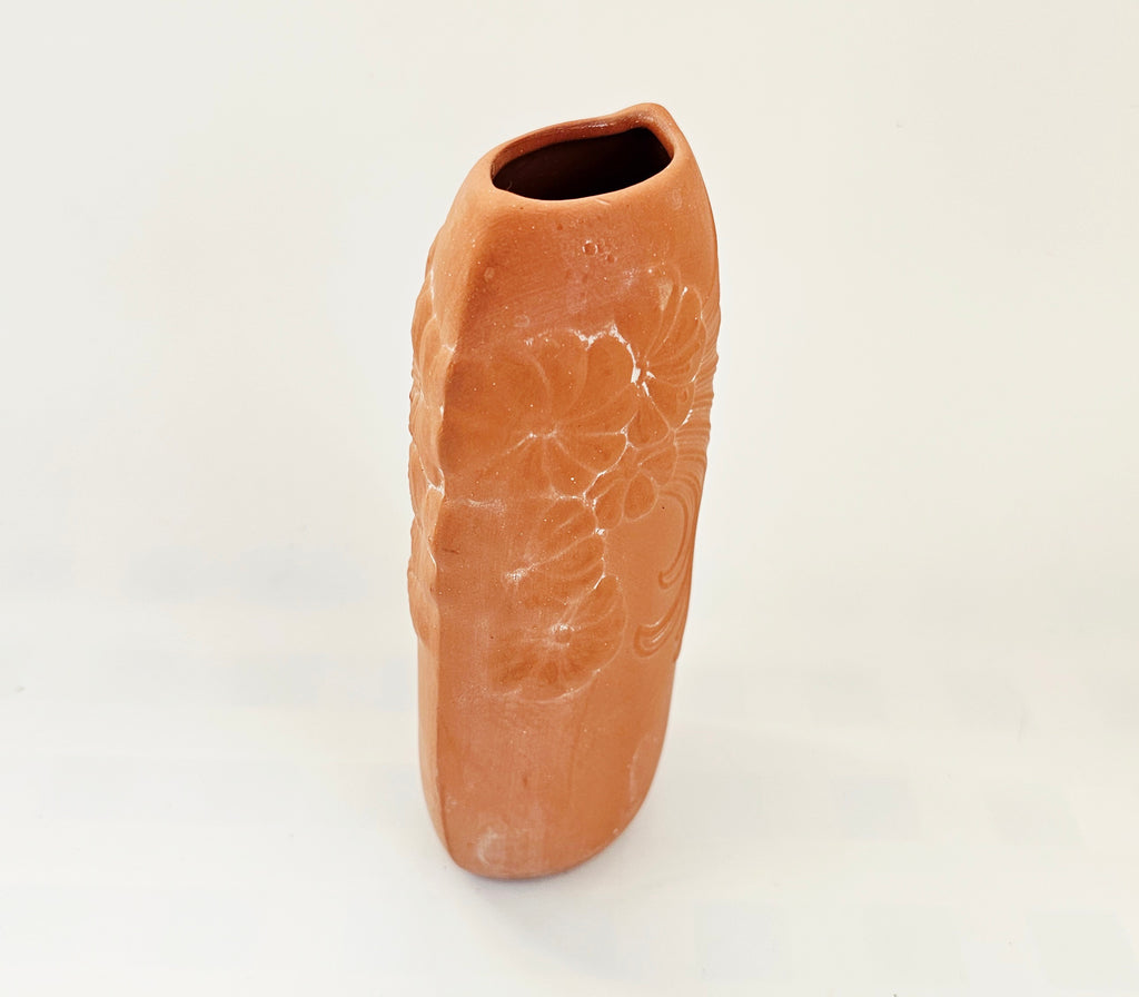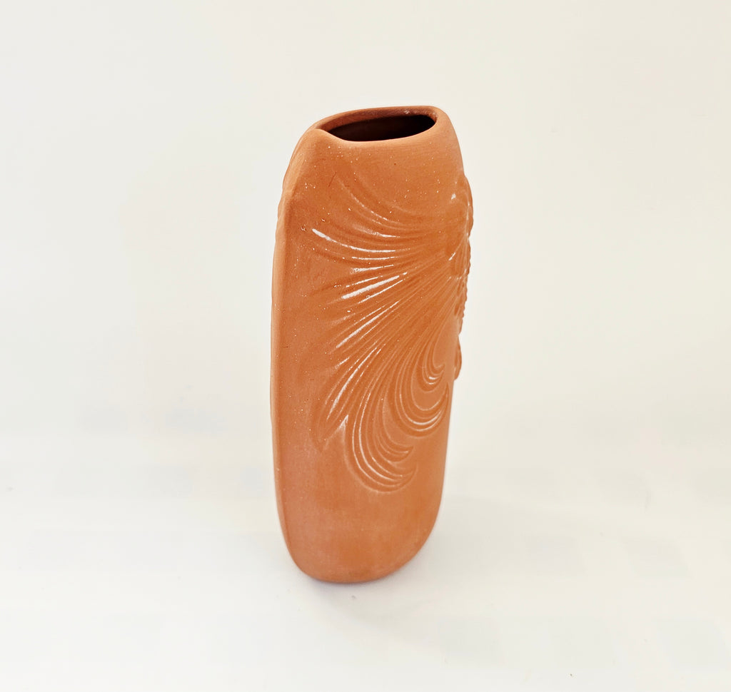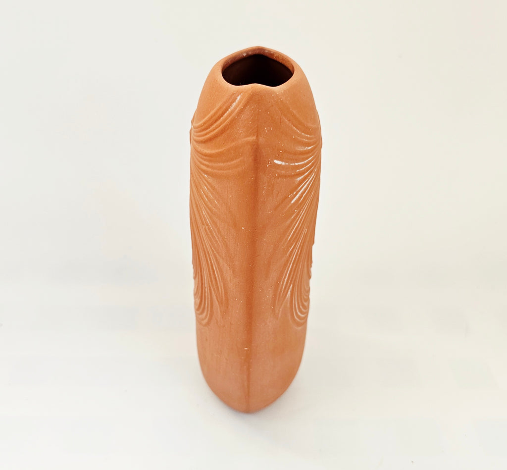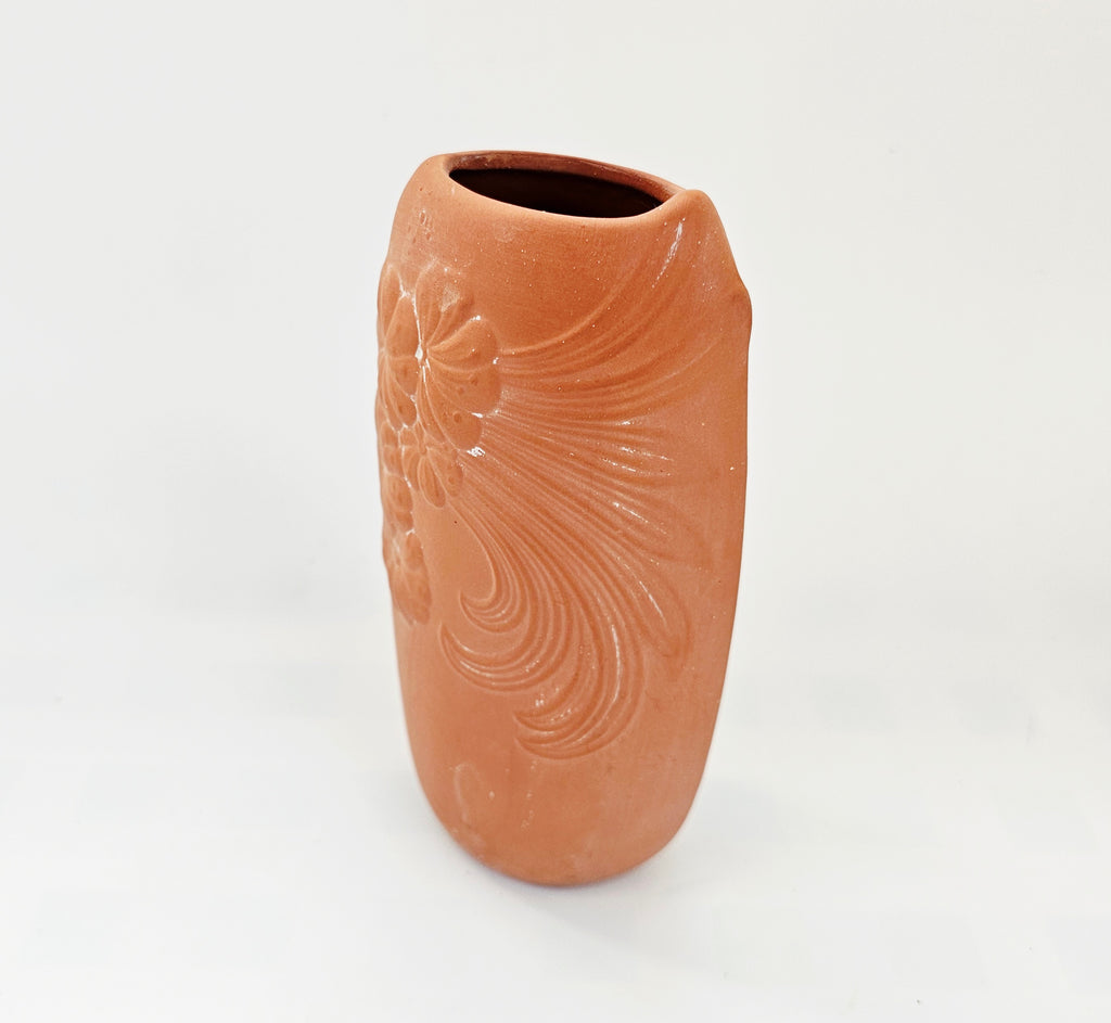 A rare vintage 1970's Kaiser bisque style vase. It has the same motifs as you would typically see in Kaiser Vases, but in terracotta colour instead of the typical white, and has no Kaiser Trademark at the bottom. It might be a mold. It weighs 254g. Its measurements are 9.5cm width, 4cm depth, and 16.5cm height. It is in good condition, no chipping, no restoration. A great addition to your vase collection. Collectible, Collector's item.