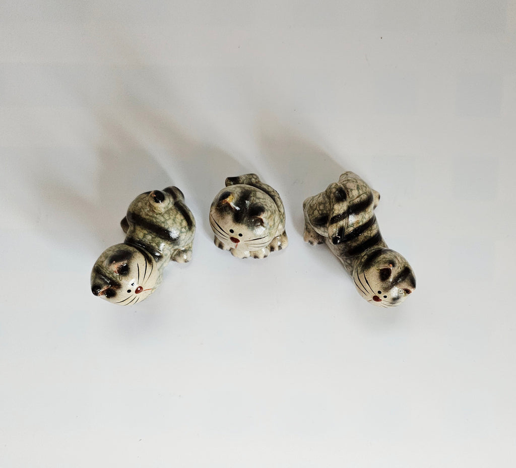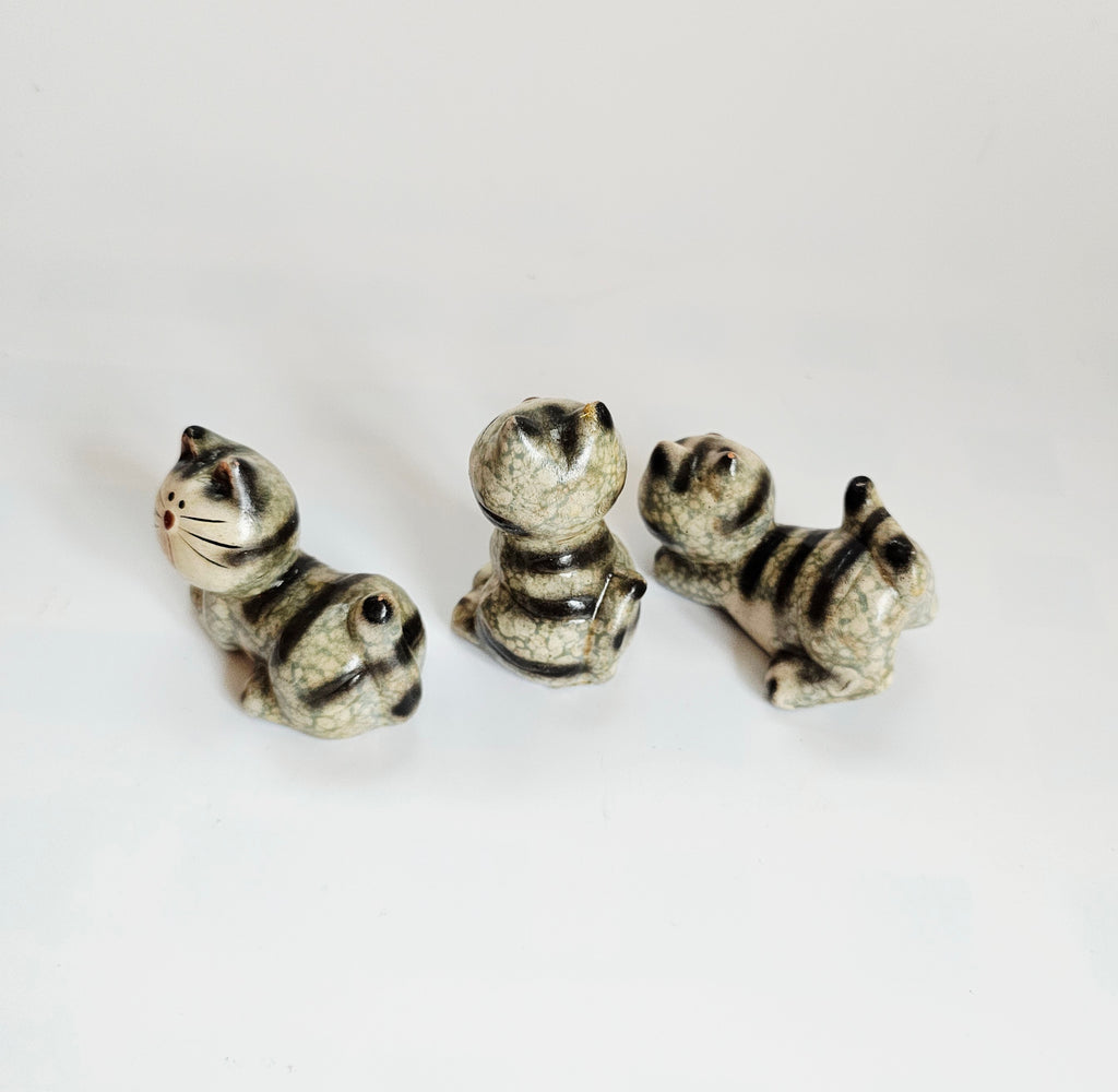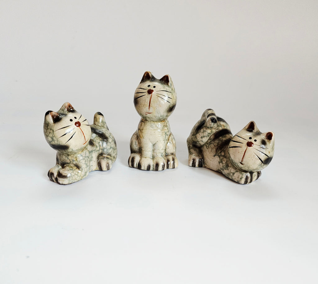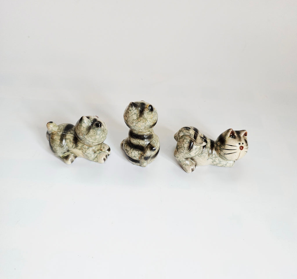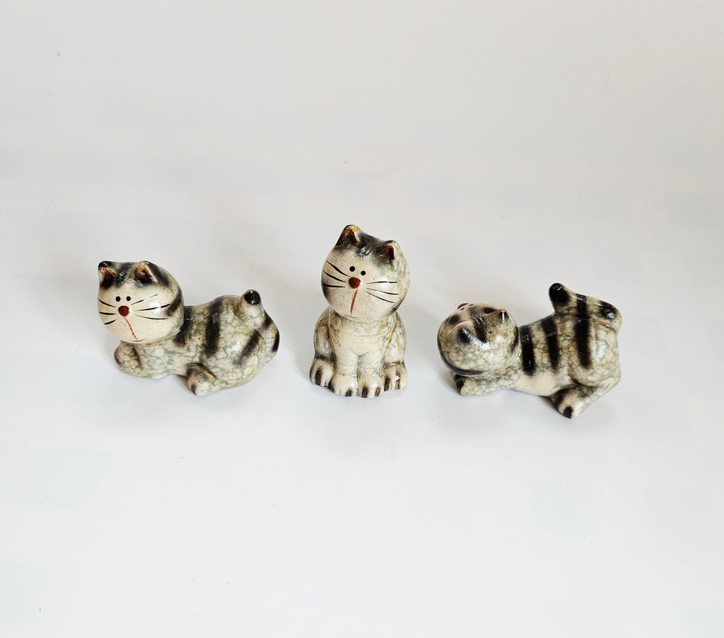 Vintage 1960's Bellini Ceramic Studio Pottery Set of Three Miniature Cats / Kittens Figurines from Italy
