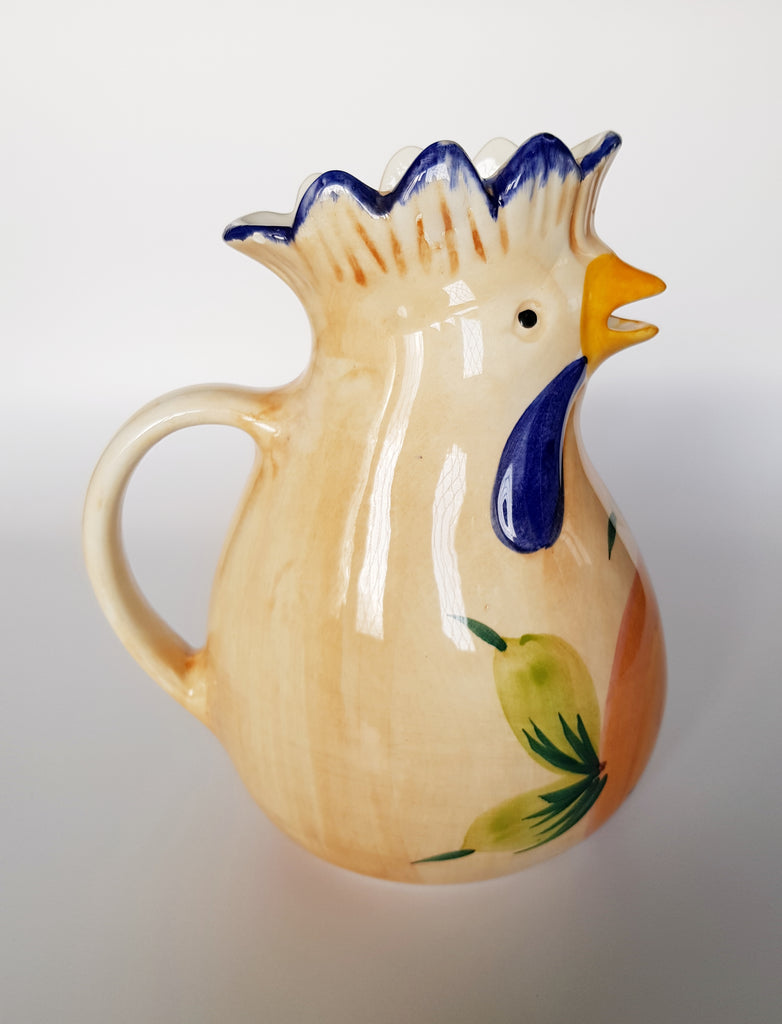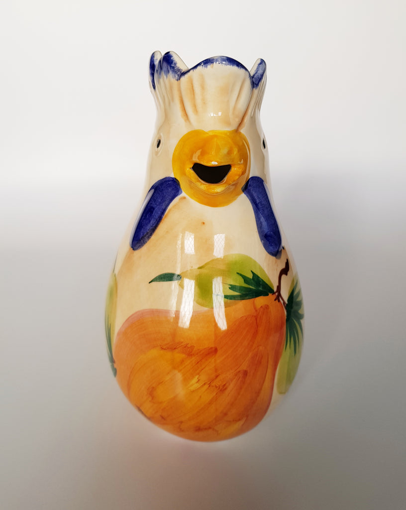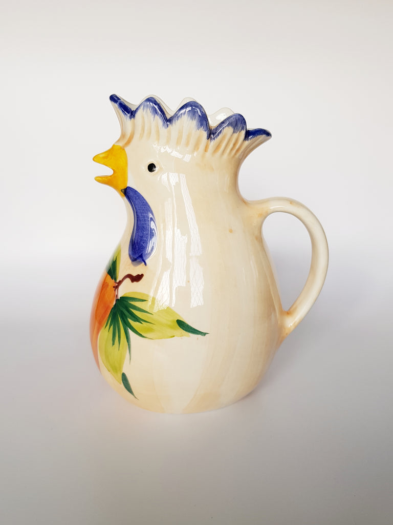 A vintage hand painted Italian majolica studio pottery rooster pitcher / jug. A beautiful addition to your Majolica Studio Pottery or Jug collection. It weighs 0.9 kg. Its measurements are Height 21 cm, Diameter 15 cm at its widest. In perfect condition, no cracks, no chipping. Collectable. Collectors' item.