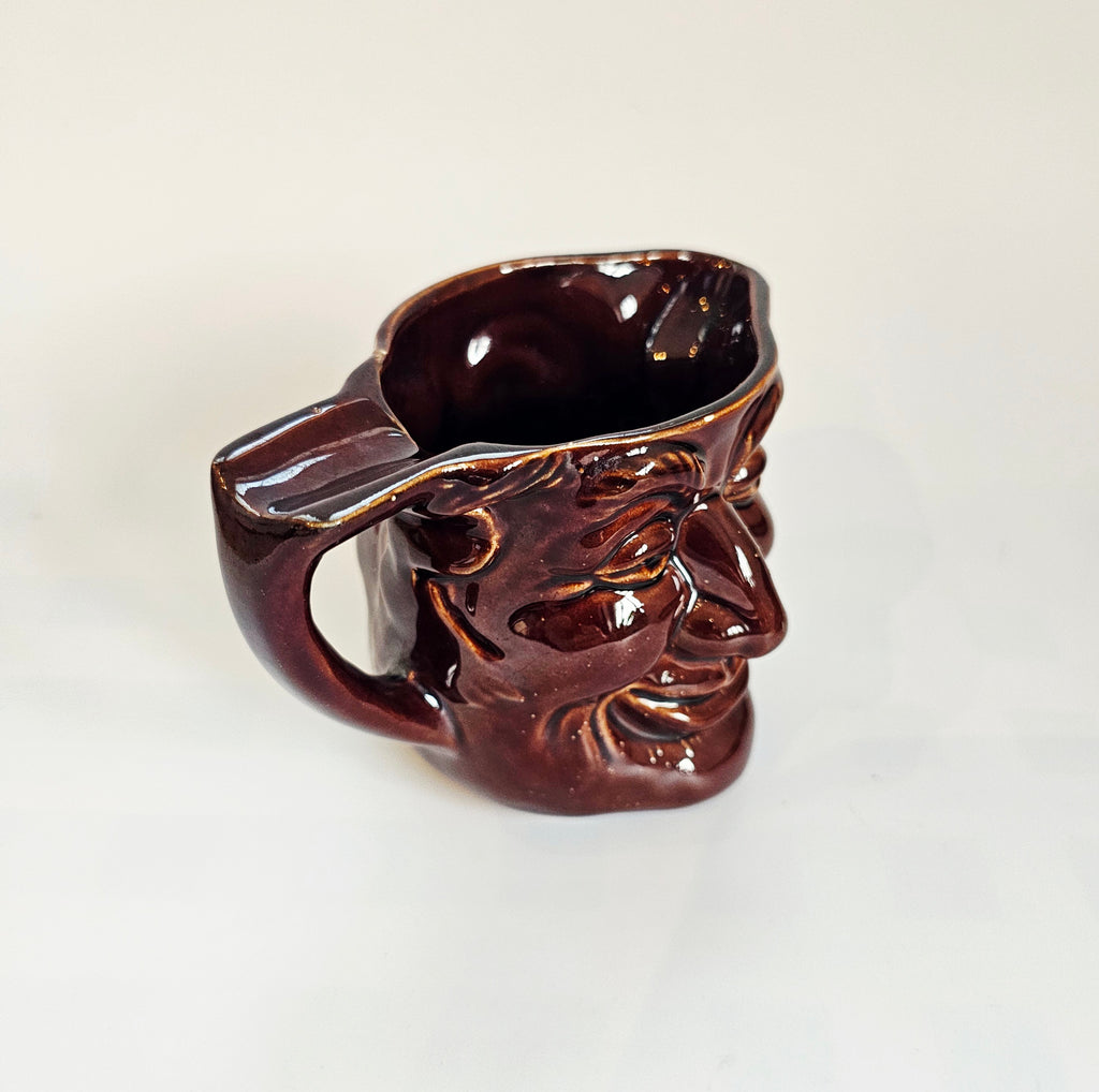 Rare Vintage Glazed Ceramic Two Faced Happy / Sad Brown Toby Jug / Character Jug, Thomas Core Ltd
