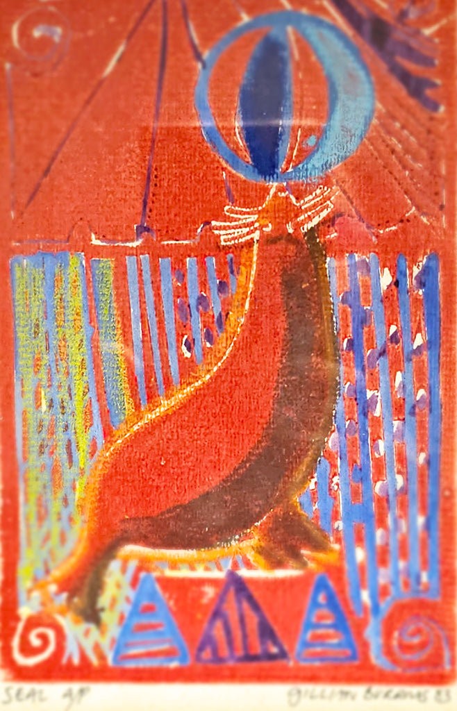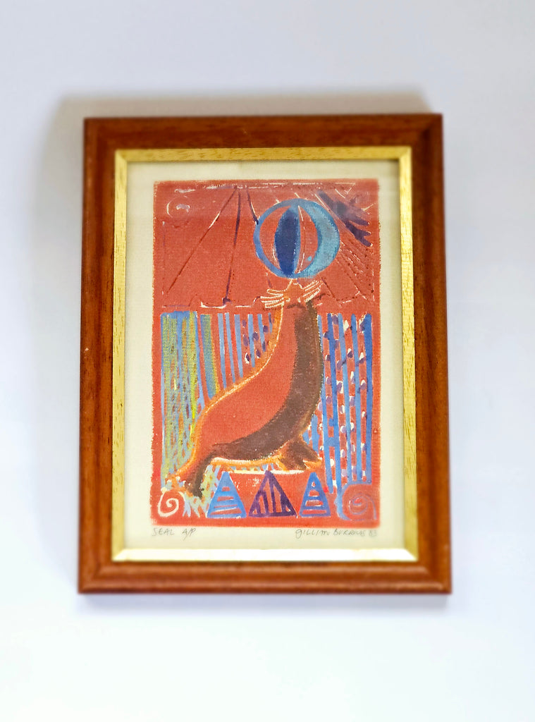 Original 1980s Framed Watercolour Painting "Seal" by Gillian Burrows, the 20th Century Artist
