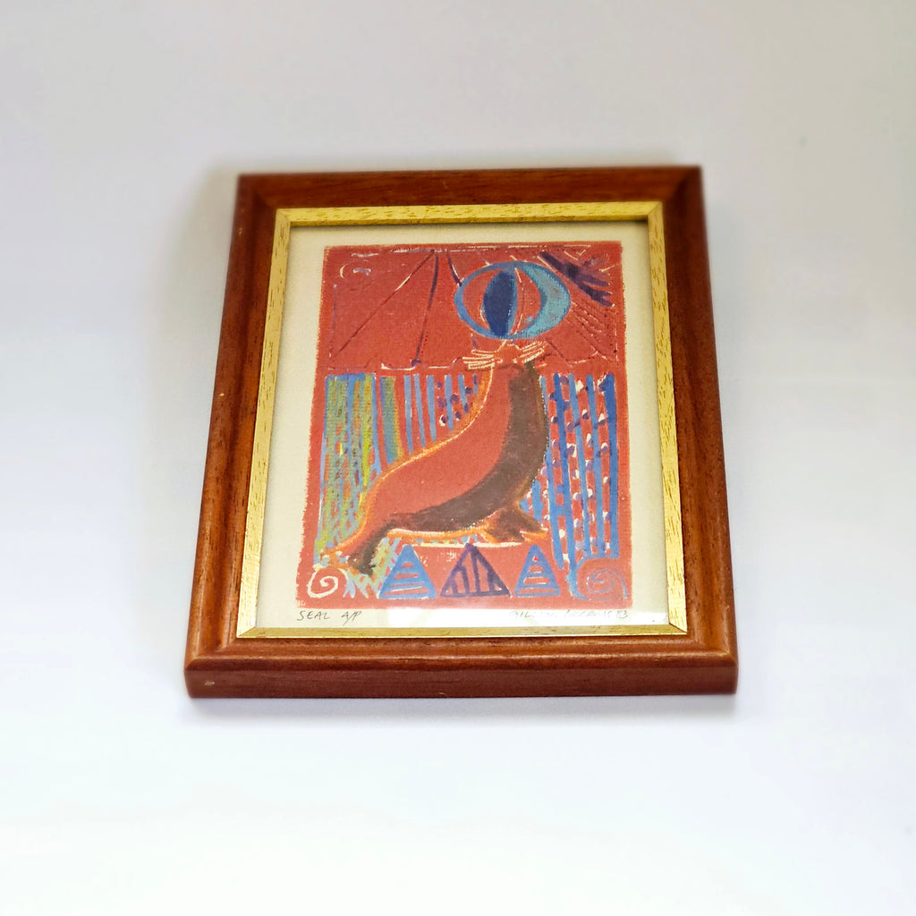 An original 1980s Framed Watercolour Painting "Seal" by Gillian Burrows, the 20th Century Artist. It weighs 284 g. It's measurements are 20.8 cm height, 15.9 cm width and 1.4 cm depth. In excellent condition. A great addition to your collection of original paintings by professional artists. Collectable. Collector's item.