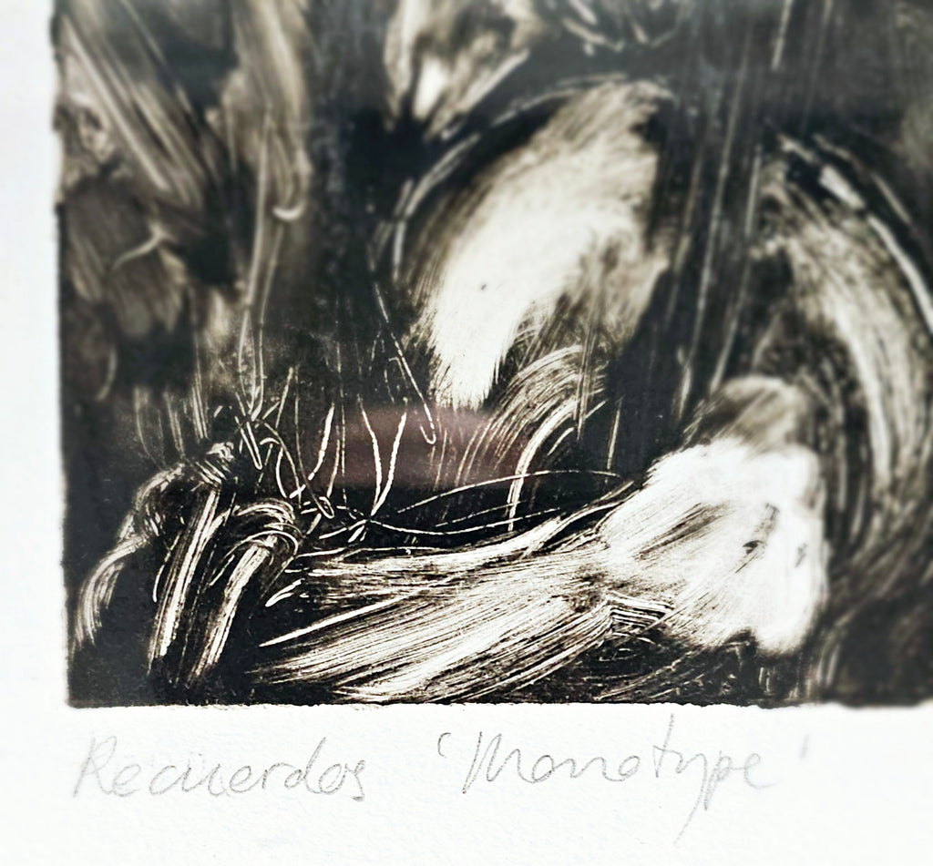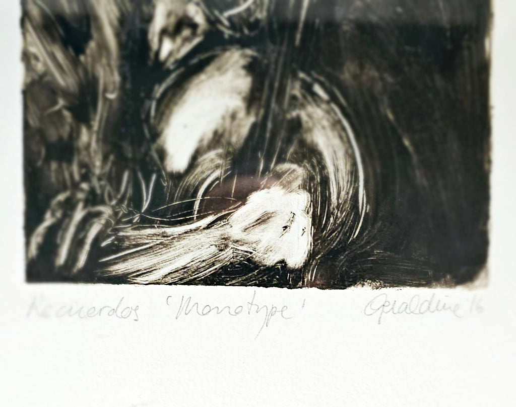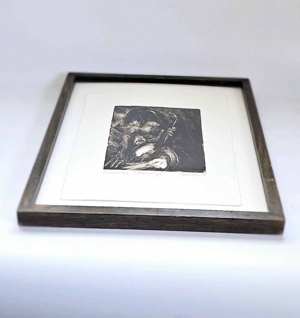 Original Framed Etching Print called "Recuerdos", Memories in Spanish signed by the artist as "Opialdine 16"