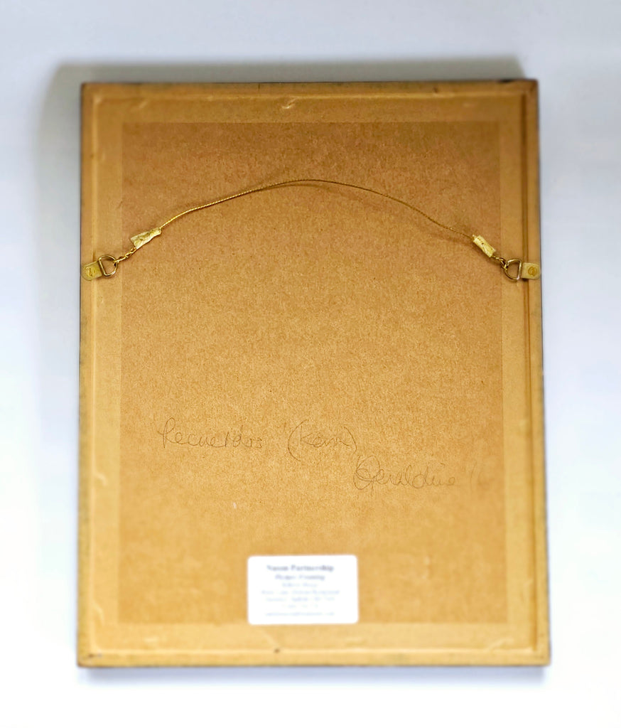 An original Framed Etching Print called "Recuerdos", Memories in Spanish signed by the artist as "Opialdine 16". It weighs 740 g. It's measurements are 34 cm height, 27 cm width and 1.9 cm depth. In excellent condition. A great addition to your collection of original paintings. Collectable. Collector's item.