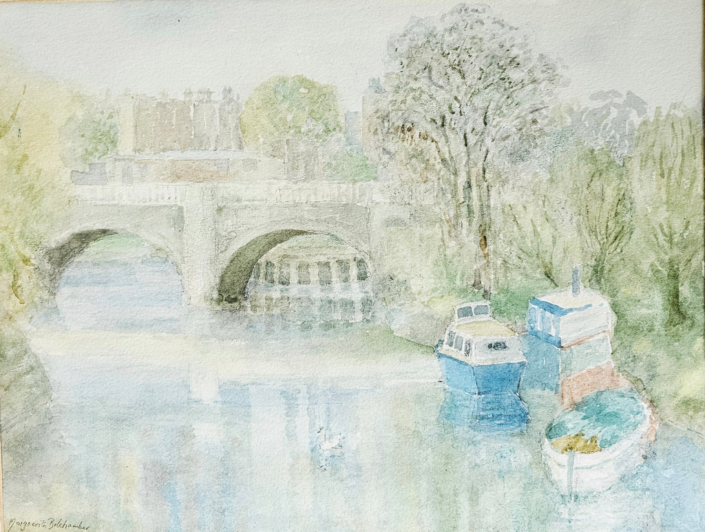 An original framed watercolour painting signed by the Artist, named Marguerita Belchamber, Depicting either The Richmond Bridge or Henley On Thames. It weighs 2050g. It's measurements are 48.8cm width, 42.5cm height, 1cm depth. In excellent condition. A great addition to your collection of original paintings by professional artists. Collectible. Collector's item.