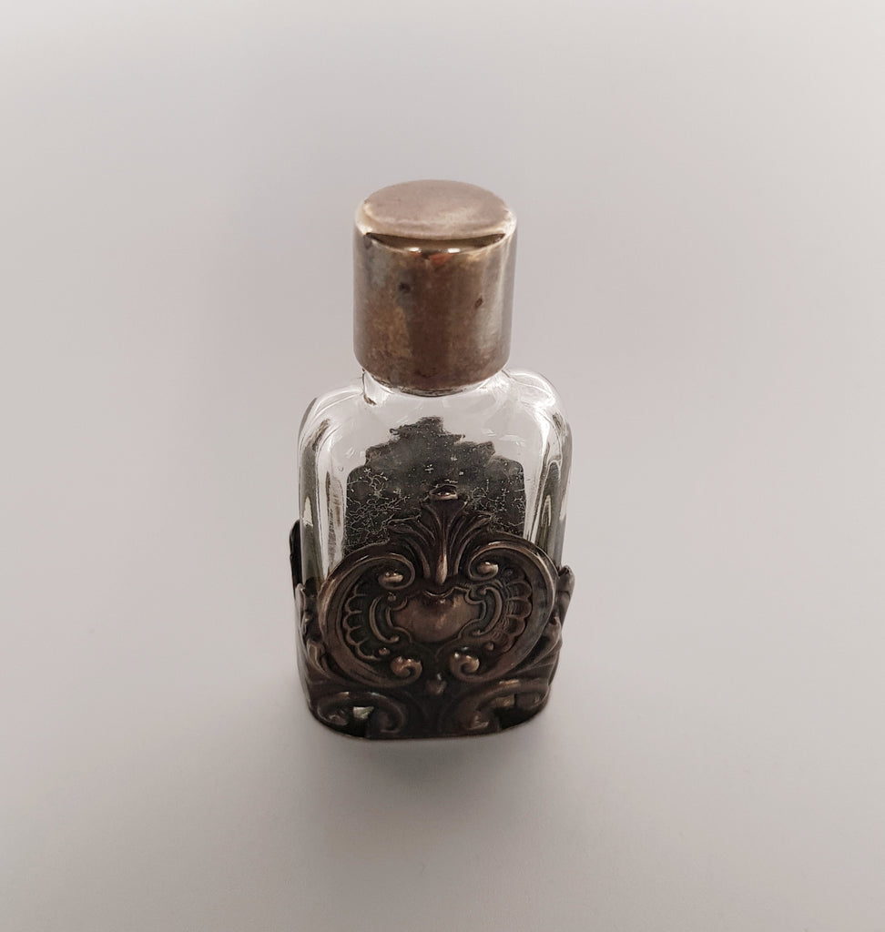 Vintage Mini Perfume Bottle with Stirling Silver Overlay
