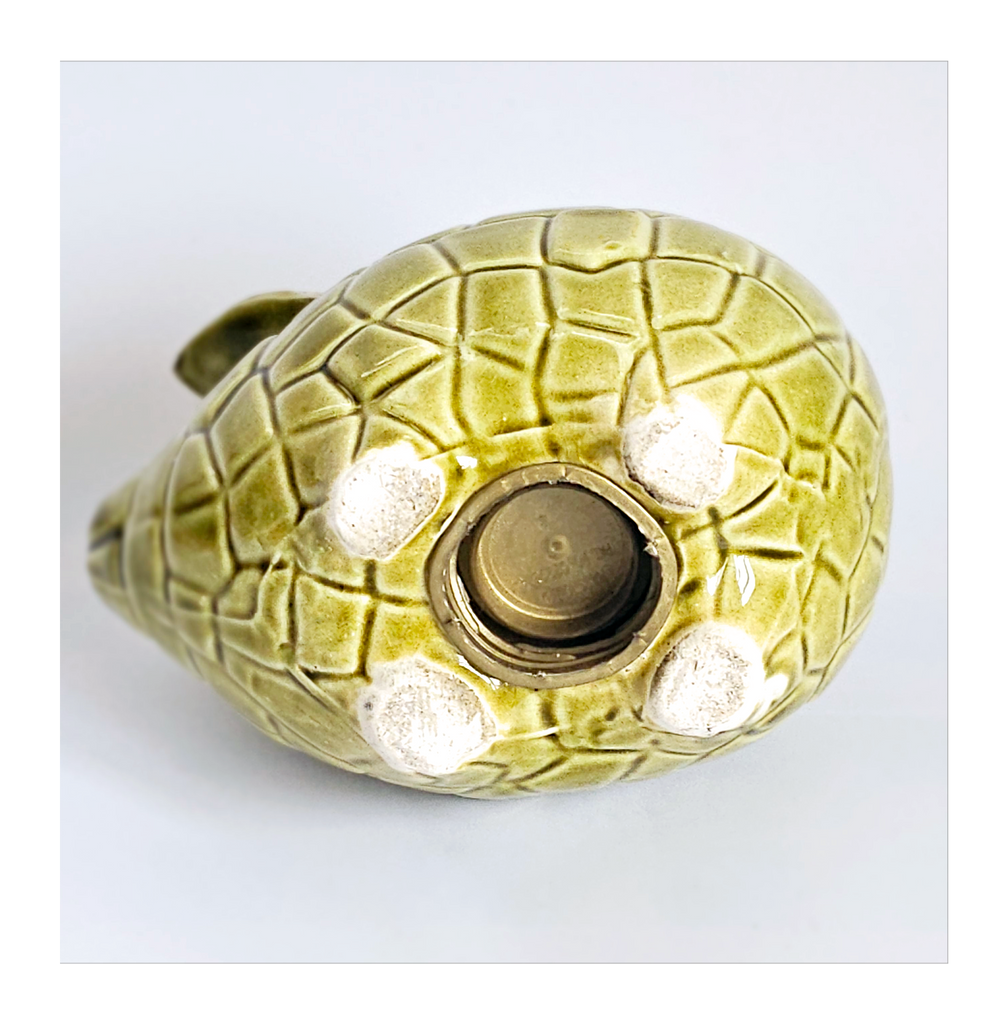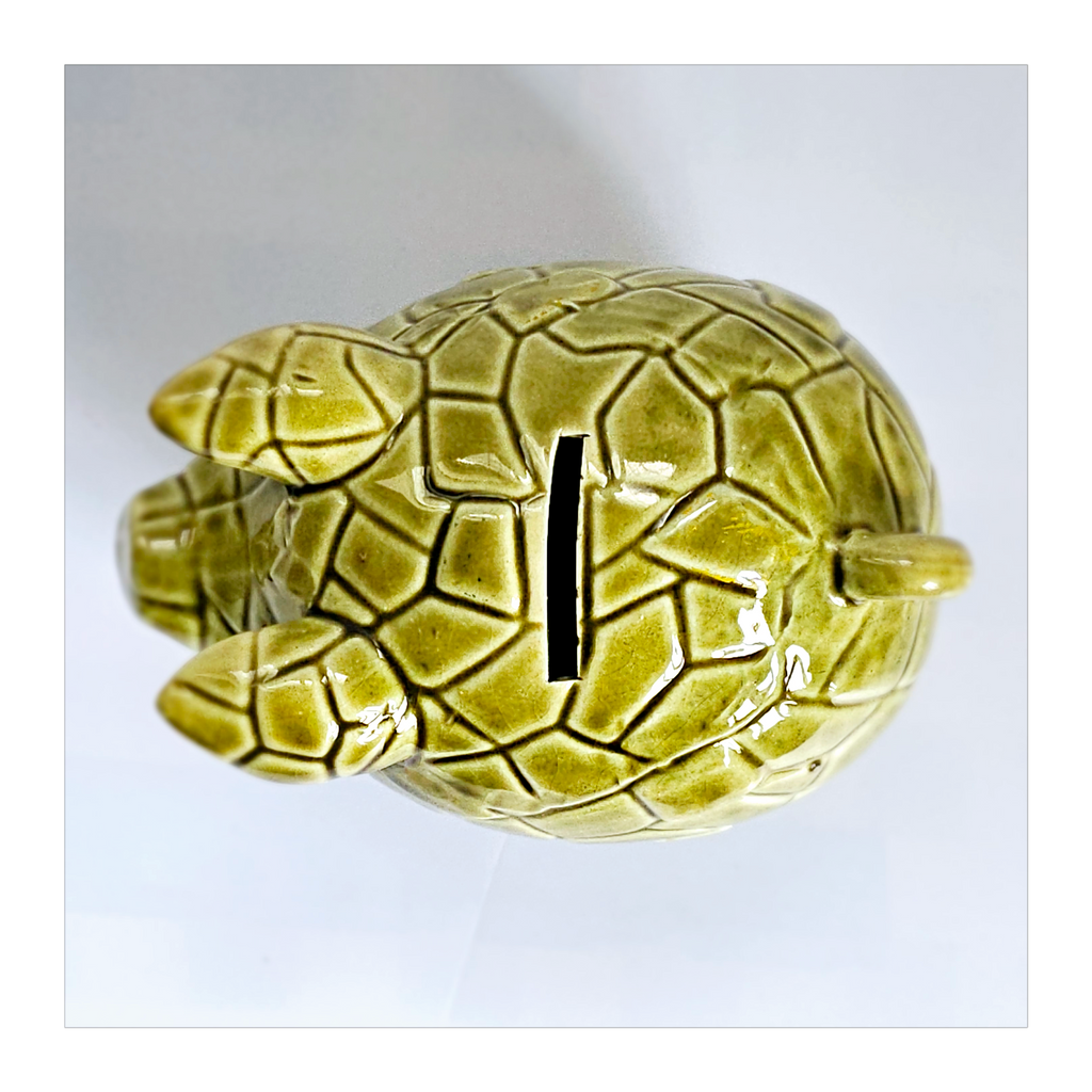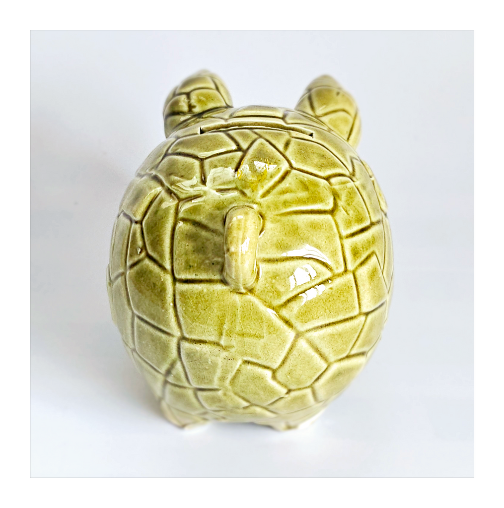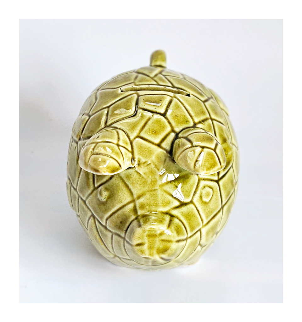 A very cute vintage 1960's glazed ceramic pig figurine piggy bank. It weighs 282 g. Its measurements are 13 cm width at its widest, 10 cm depth, and 10 cm height. In excellent condition, no chips, no cracks, and no restoration. A great addition to your Piggy Bank / Coin Bank collection. Collectable. Collector's item.